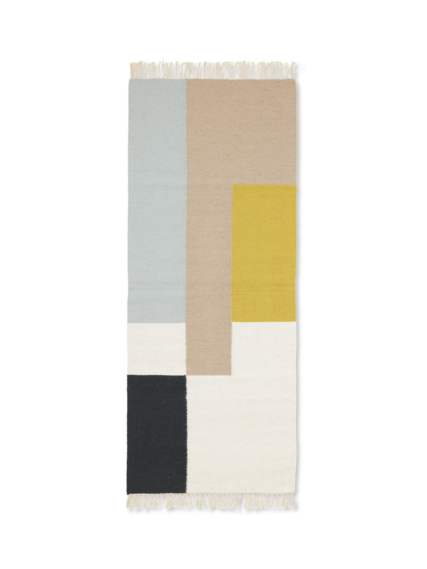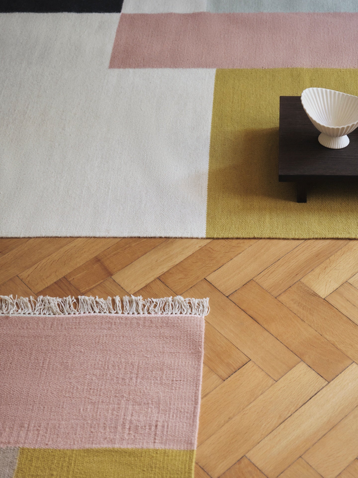 Chodnik Kelim Squares został wykonany ręcznie z mieszanki wełny i bawełny, przy użyciu tradycyjnej techniki tkania na krośnie Punja. Każdy egzemplarz jest unikatowy, z delikatnymi różnicami kolorystycznymi, które nadają mu autentycznego uroku. Idealny wybór do przedpokoju, korytarza lub jako akcent dekoracyjny w innych pomieszczeniach.