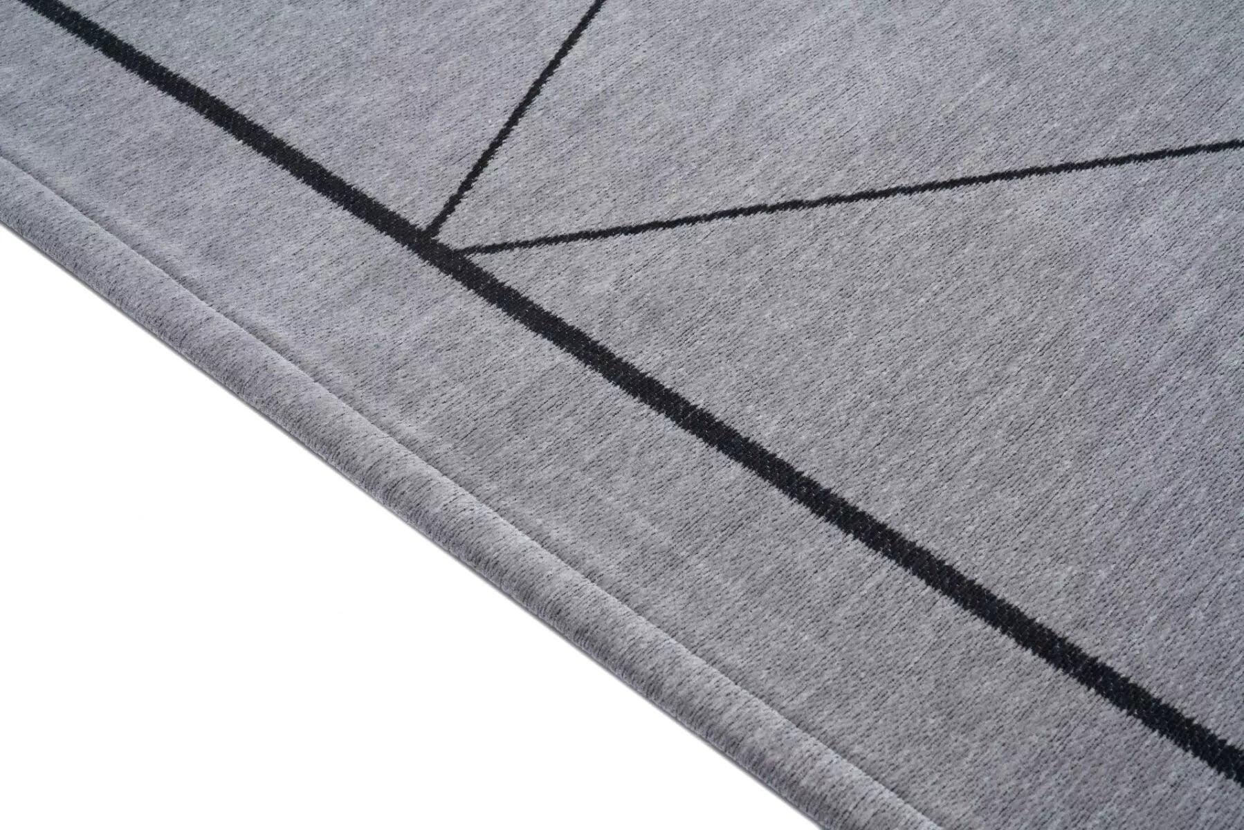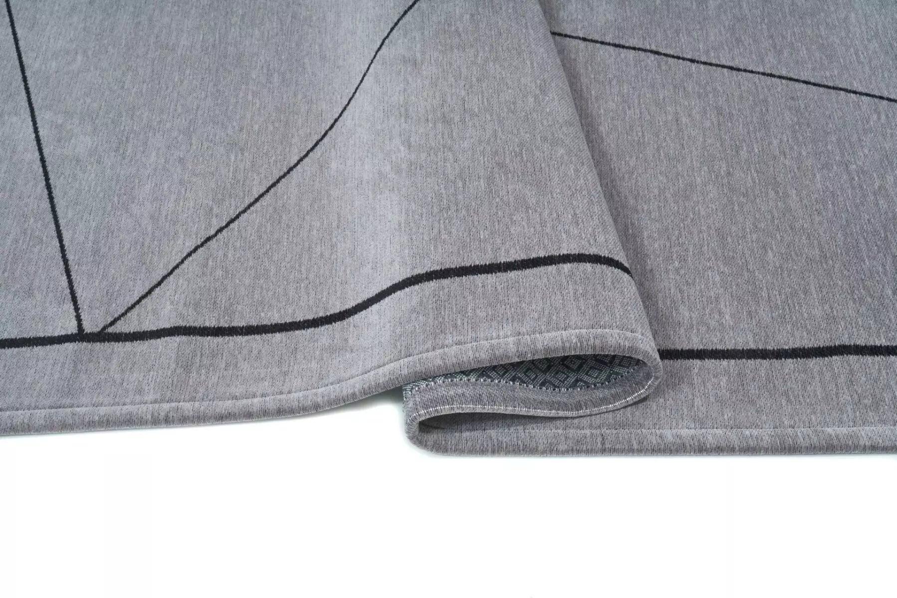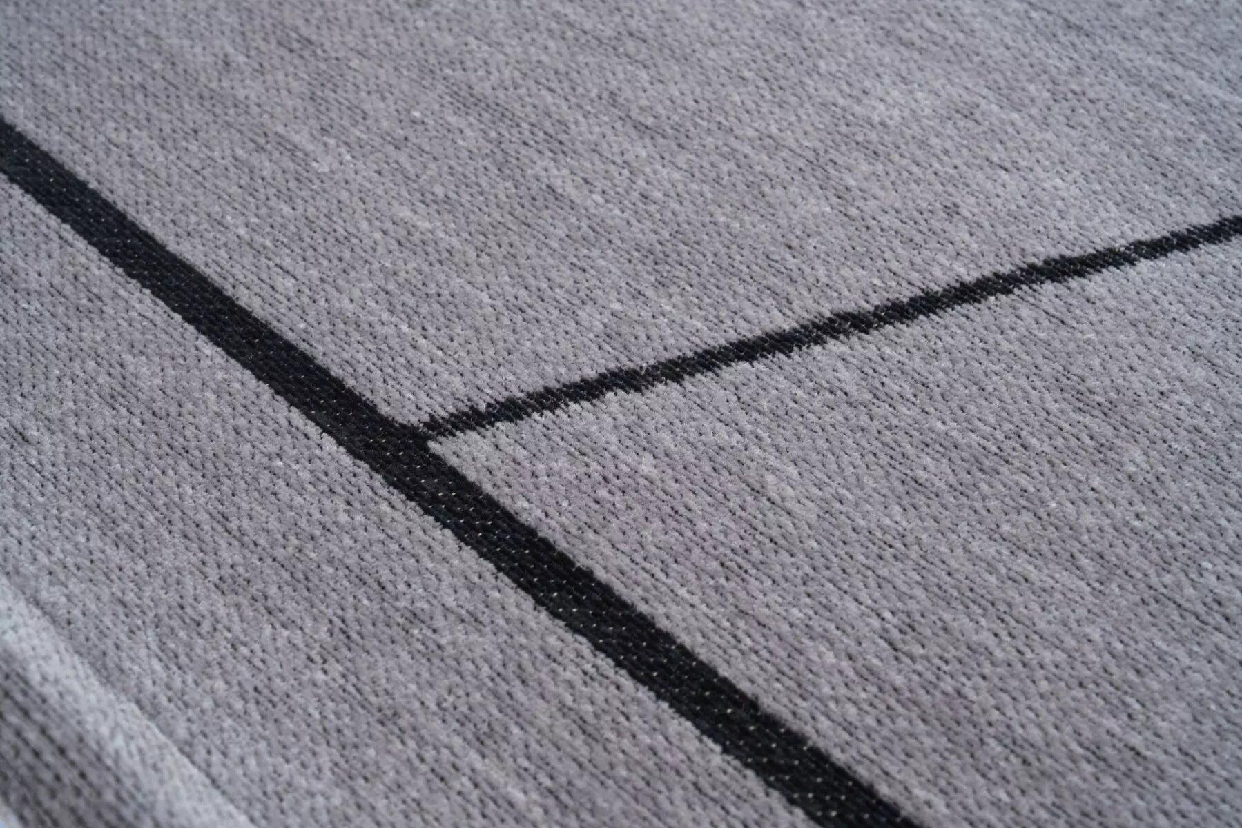 Dywan Linea to idealna propozycja dla osób, które cenią sobie wyrafinowaną minimalistyczną stylistykę. Dywan ten ma szare tło i czarne geometryczne linie, co tworzy intrygujący wzór. Jego miła w dotyku powierzchnia zapewnia przyjemny efekt estetyczny i użytkowy.