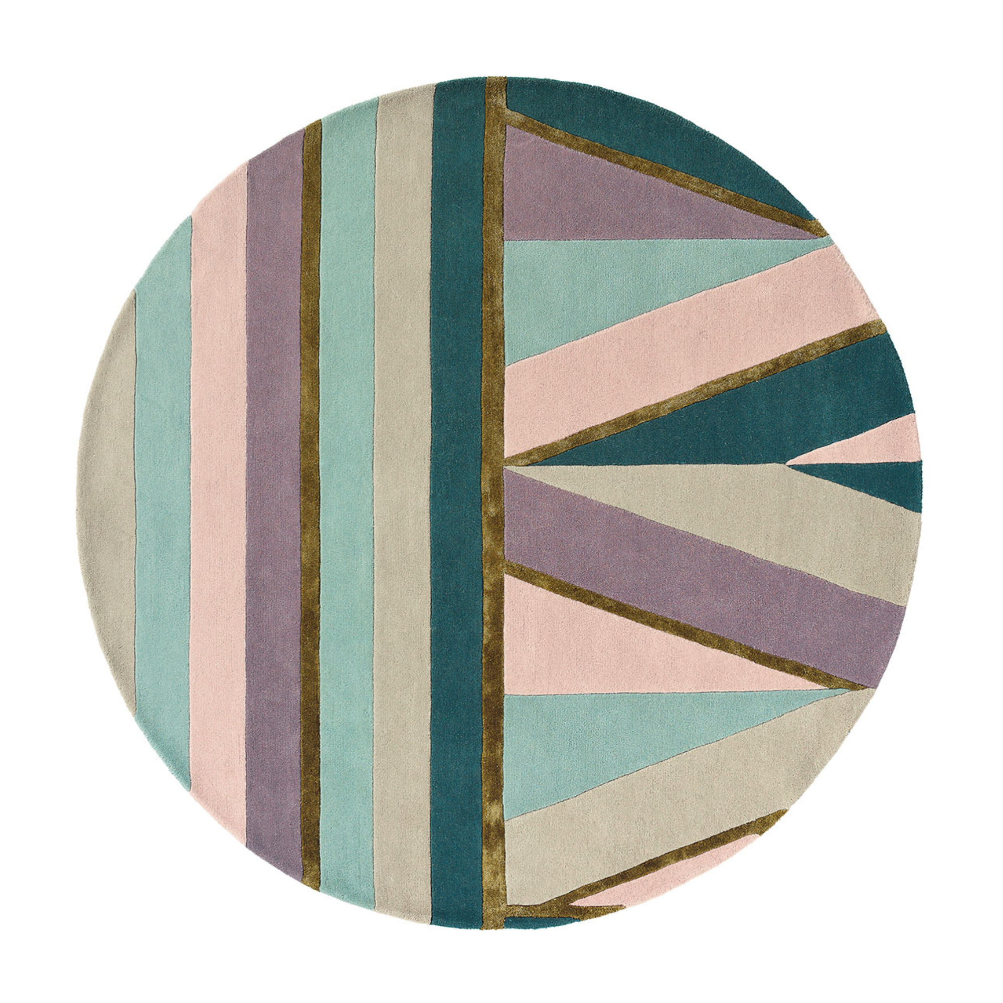 Okrągły dywan to stylowa dekoracja z geometrycznym wzorem, która przyciąga wzrok wyjątkowym połączeniem kolorów i precyzją wykonania. Wykonany z najwyższej jakości wełny, zapewnia miękkość, komfort i elegancję w codziennym użytkowaniu.