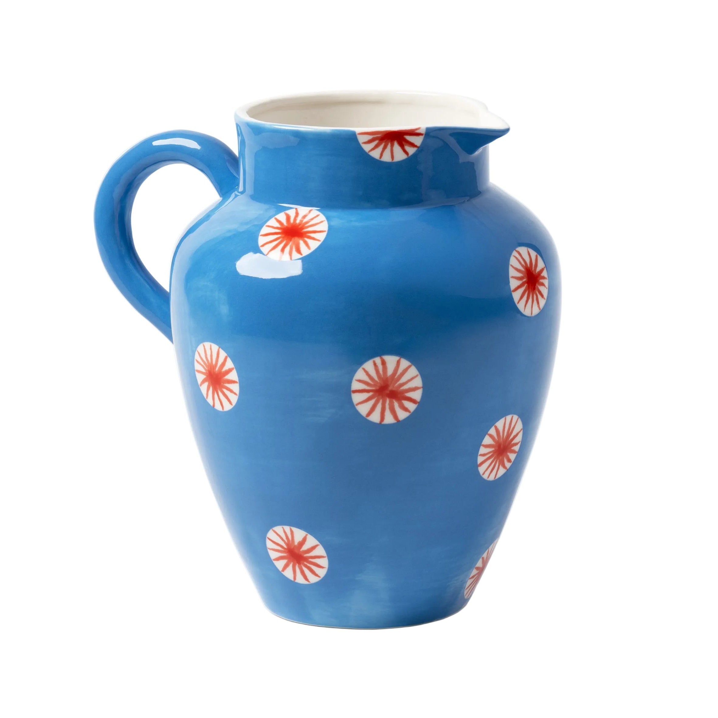 Wykonany z trwałej kamionki dzbanek łączy dekoracyjny charakter z codzienną funkcjonalnością. Duża pojemność sprawia, że idealnie nadaje się do serwowania wody, soków lub napojów podczas rodzinnych spotkań i większych przyjęć.