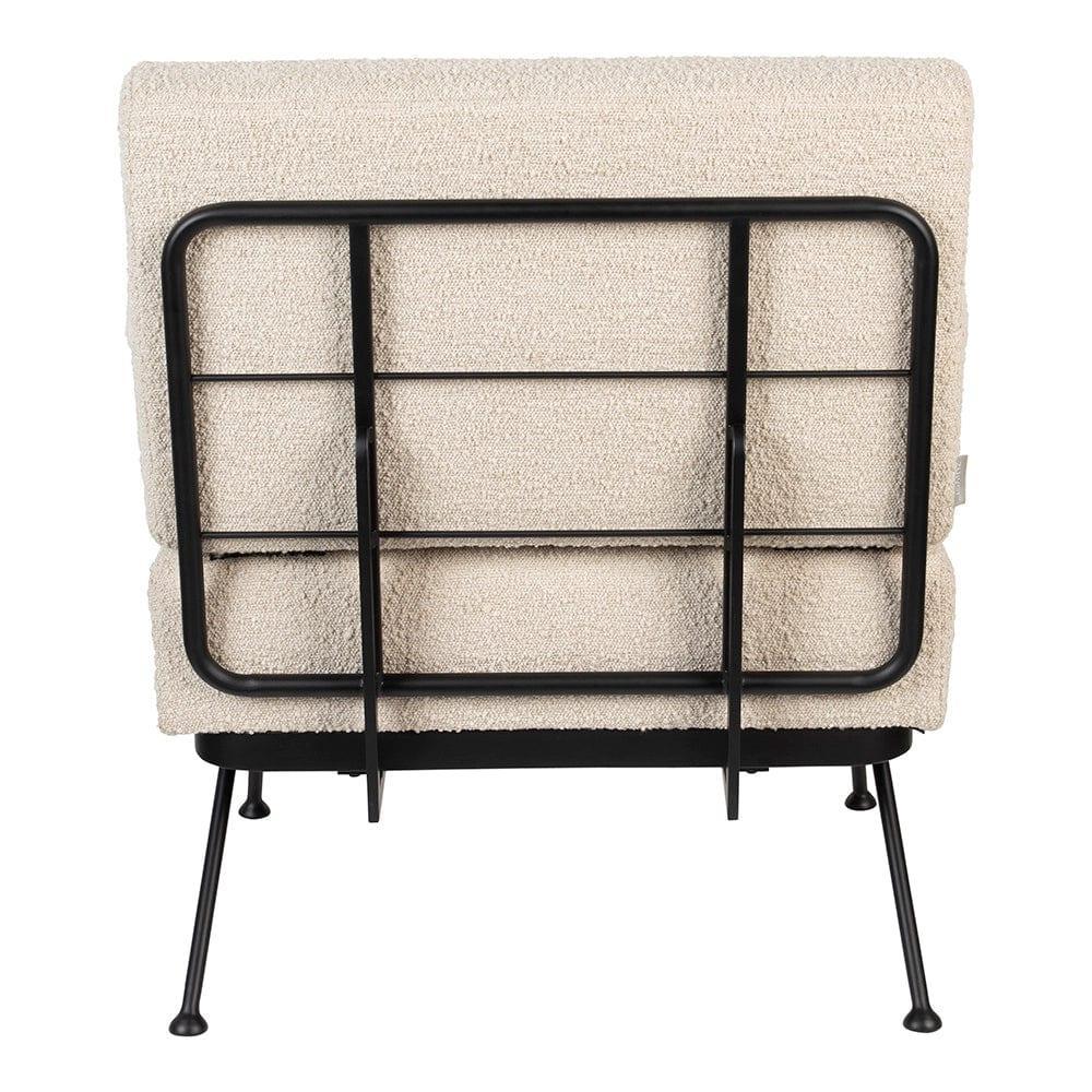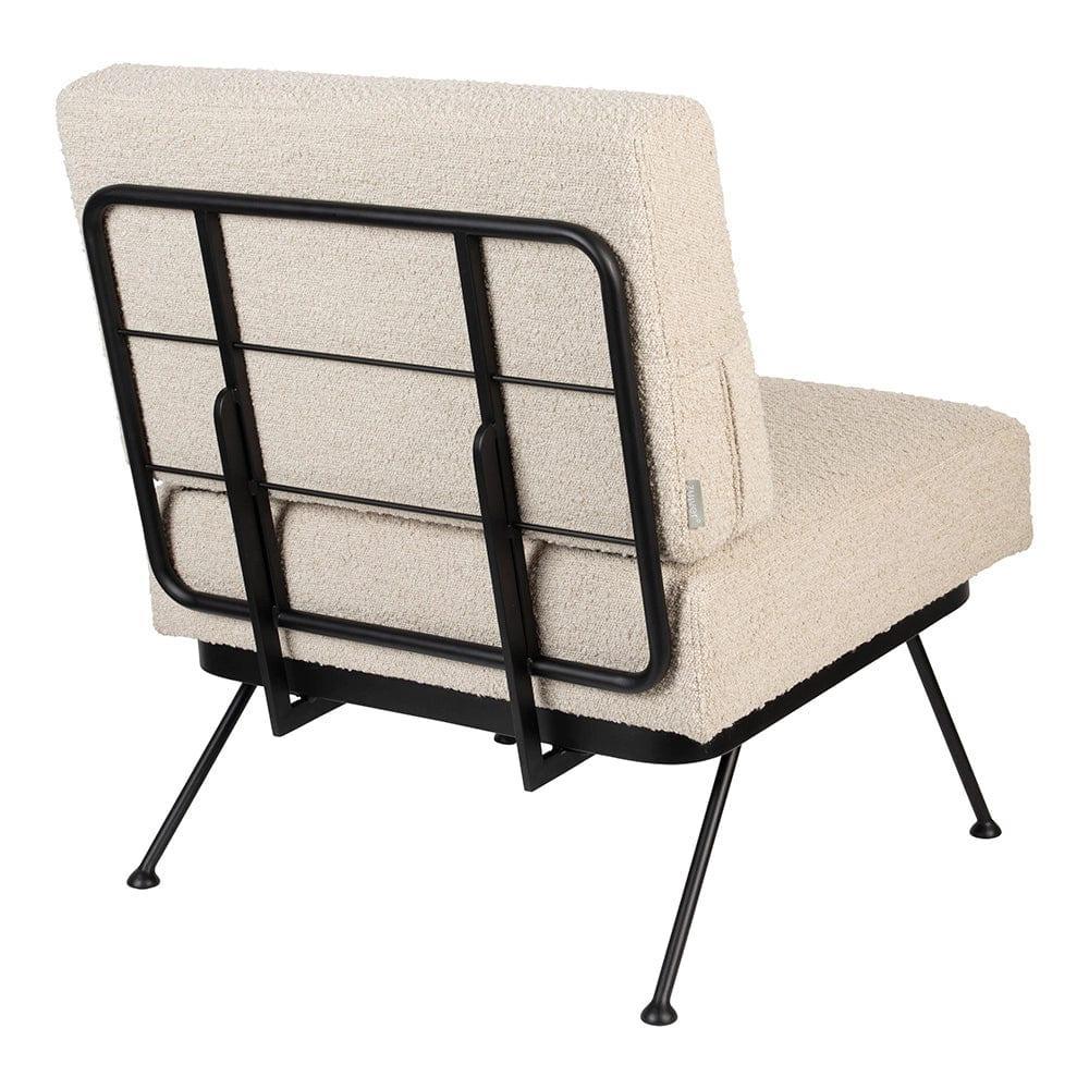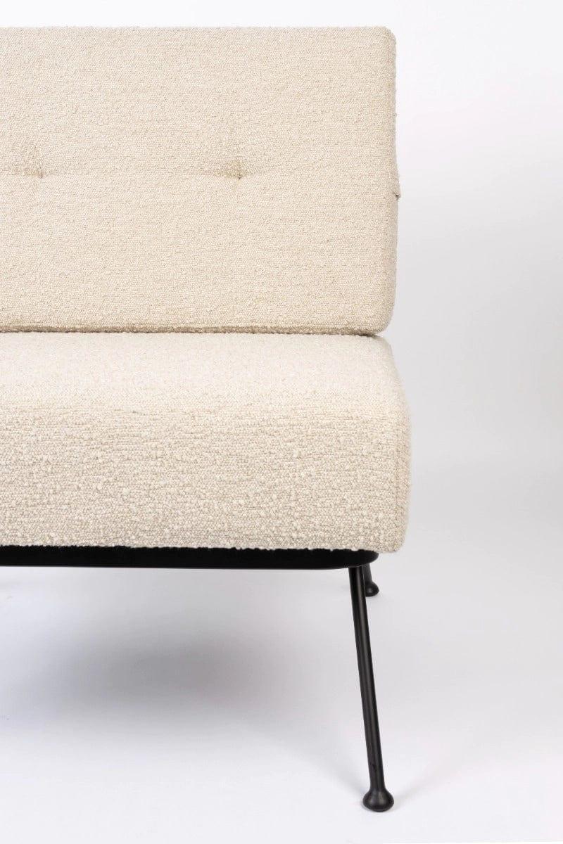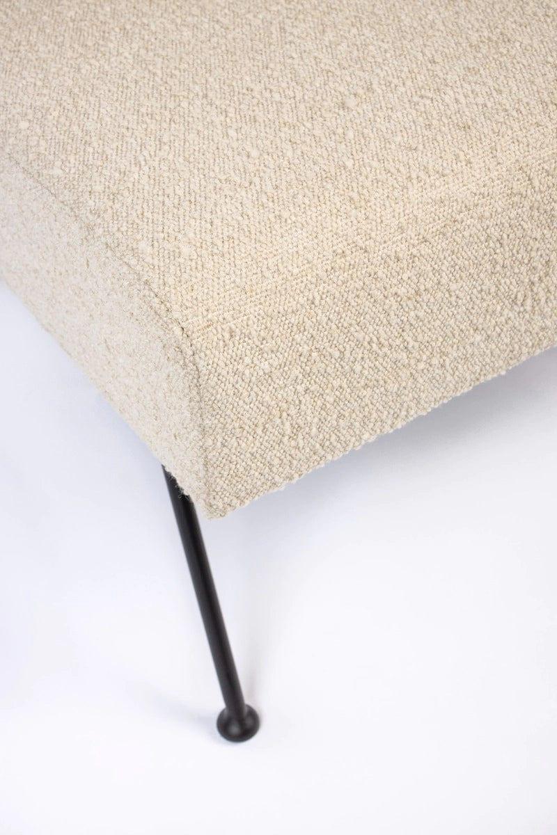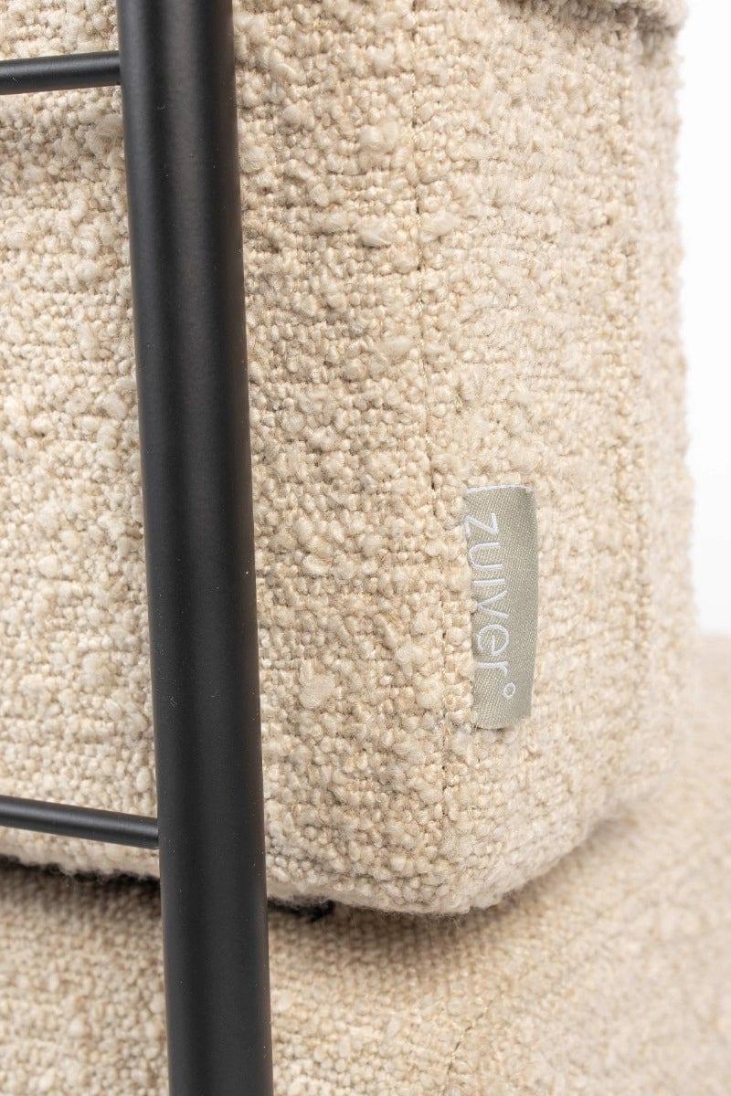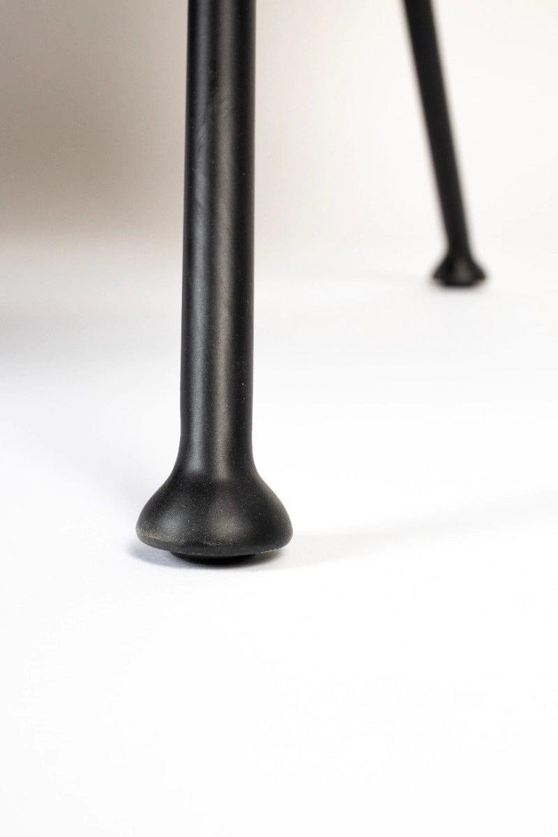 Stalowe nogi malowane proszkowo na czarno z plastikowymi ślizgaczami. Tapicerka z tkaniny mieszanej: 81% poliester, 19% akryl. Wypełniona pianką o gęstości 28-32. Skorupa ze sklejki eukaliptusowej.