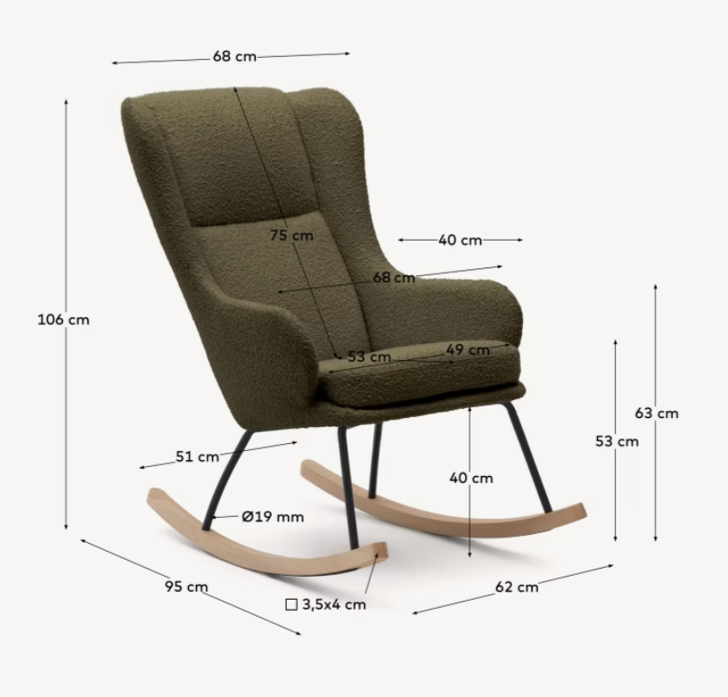 Zielony fotel bujany w tkaninie boucle Maustin to nie tylko mebel; to oaza spokoju, która kusi do zanurzenia się w chwilach relaksu. Pozwól sobie na luksus wyjątkowego designu i komfortu, wybierając Maustin jako swojego ulubionego towarzysza do odpoczynku.