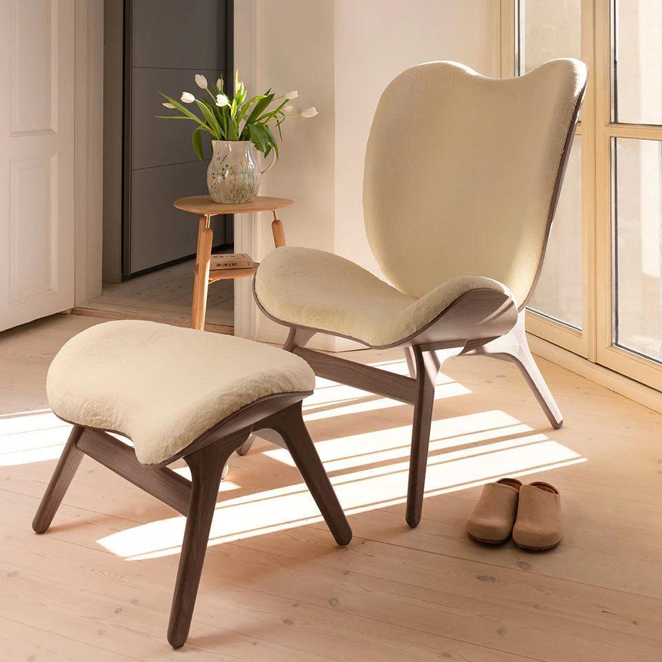 Fotel CONVERSATION PIECE TALL kremowy plusz z ciemno dębową podstawą