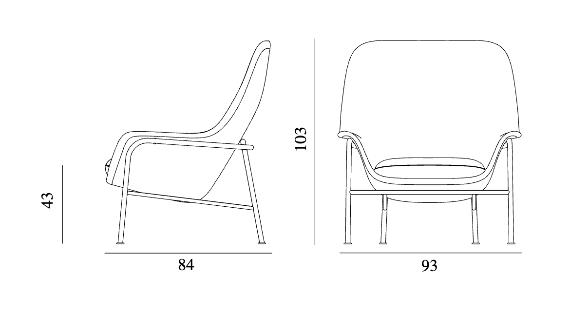Materiał: pianka PU z wzmocnieniem stalowym. Poduszka: Miękka formowana pianka PU. Nogi: Stalowe – stal malowana proszkowo. Drewniane nogi – dąb lakierowany lub malowany i lakierowany.