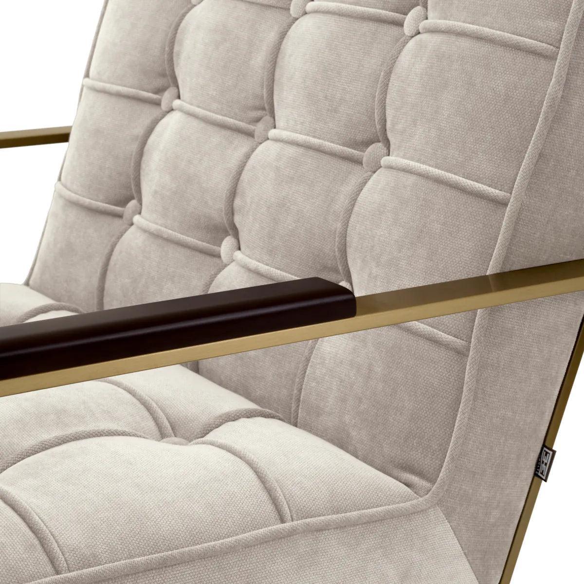 Zanurz się w świecie wyrafinowanego designu z fotelem Ernesto. Jego unikalna konstrukcja łączy w sobie nowoczesność z klasyczną elegancją, tworząc mebel, który jest nie tylko funkcjonalny, ale także prawdziwą ozdobą każdego wnętrza. Szczotkowane wykończenie mosiądzu dodaje ramie subtelnej głębi i blasku, podkreślając jej prostokątną formę.
