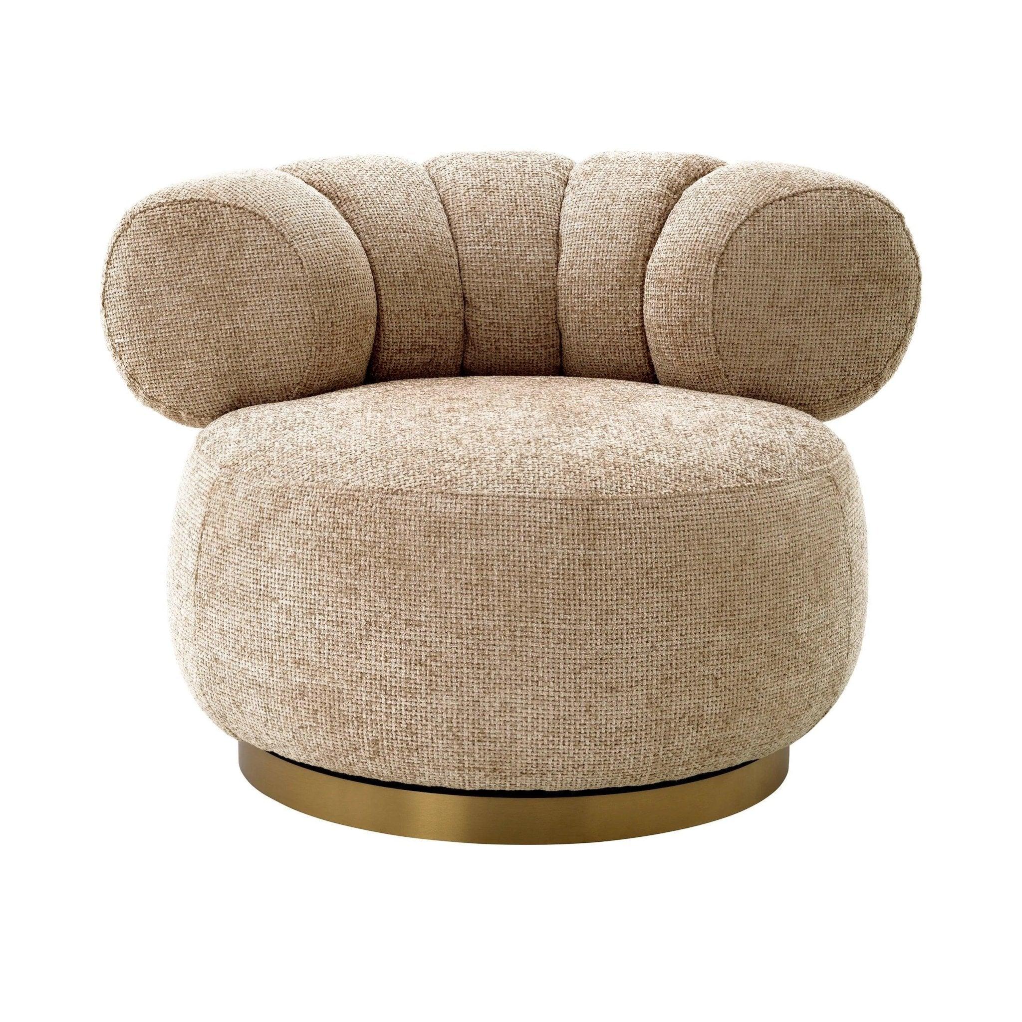 Phedra nie jest zwykłym fotelem obrotowym - to idealny dodatek, który wniesie do Twojego wnętrza szyk i klasę. Jego obrotowa podstawa ze szczotkowanego mosiądzu to elegancki detal, który nadaje piaskowemu fotelowi Phedra wyjątkowego charakteru i trwałości. To produkt, który wykracza poza standardy - to luksusowy element wyposażenia, który będzie ozdobą każdego prestiżowego wnętrza.