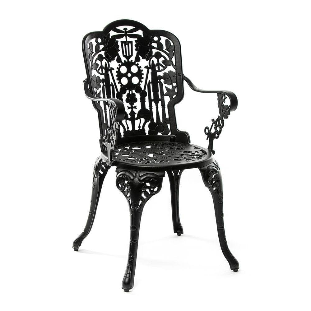 Wyjątkowy fotel ogrodowy w stylu wiktoriańskim w nowym, awangardowym wydaniu to dzieło włoskiej marki Seletti. Oparcie i siedzenie ukrywają w sobie liczne, niecodzienne wzory, takie jak koła zębate, czy kwiaty, co nadaje całości niepowtarzalnego charakteru.