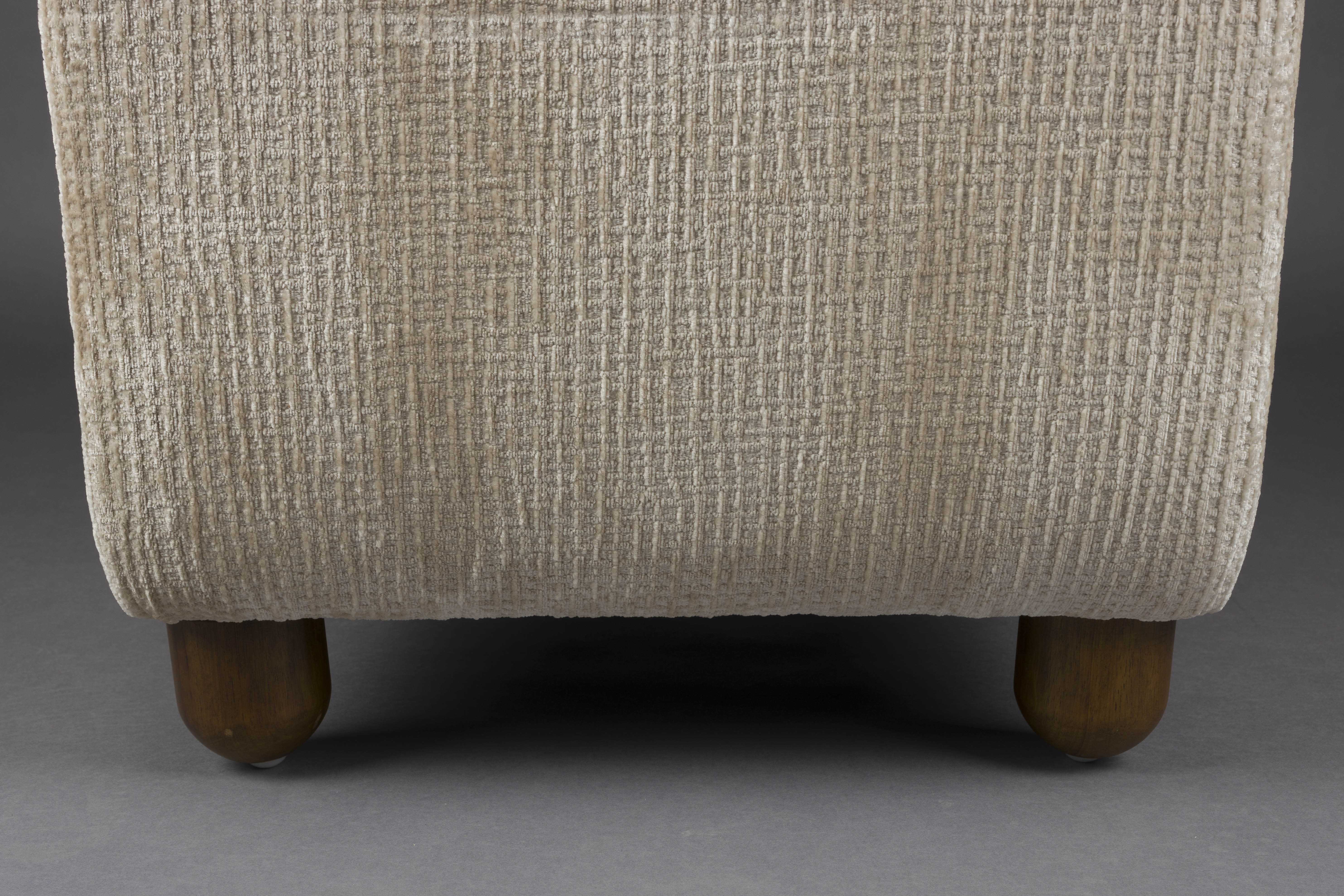 Fotel Robinson to mebel, który natychmiast ociepla każde wnętrze. Dzięki jasnej, kremowej tapicerce z delikatnym, plecionym wzorem prezentuje się subtelnie, a zarazem stylowo. Miękka w dotyku tkanina zapewnia wysoki komfort użytkowania, zapraszając do relaksu. To, co wyróżnia Robinsona, to gięte podłokietniki z drewna mango – ich ciemne, naturalne wykończenie pięknie kontrastuje z jasnym materiałem, nadając fotelowi elegancki, vintage charakter.