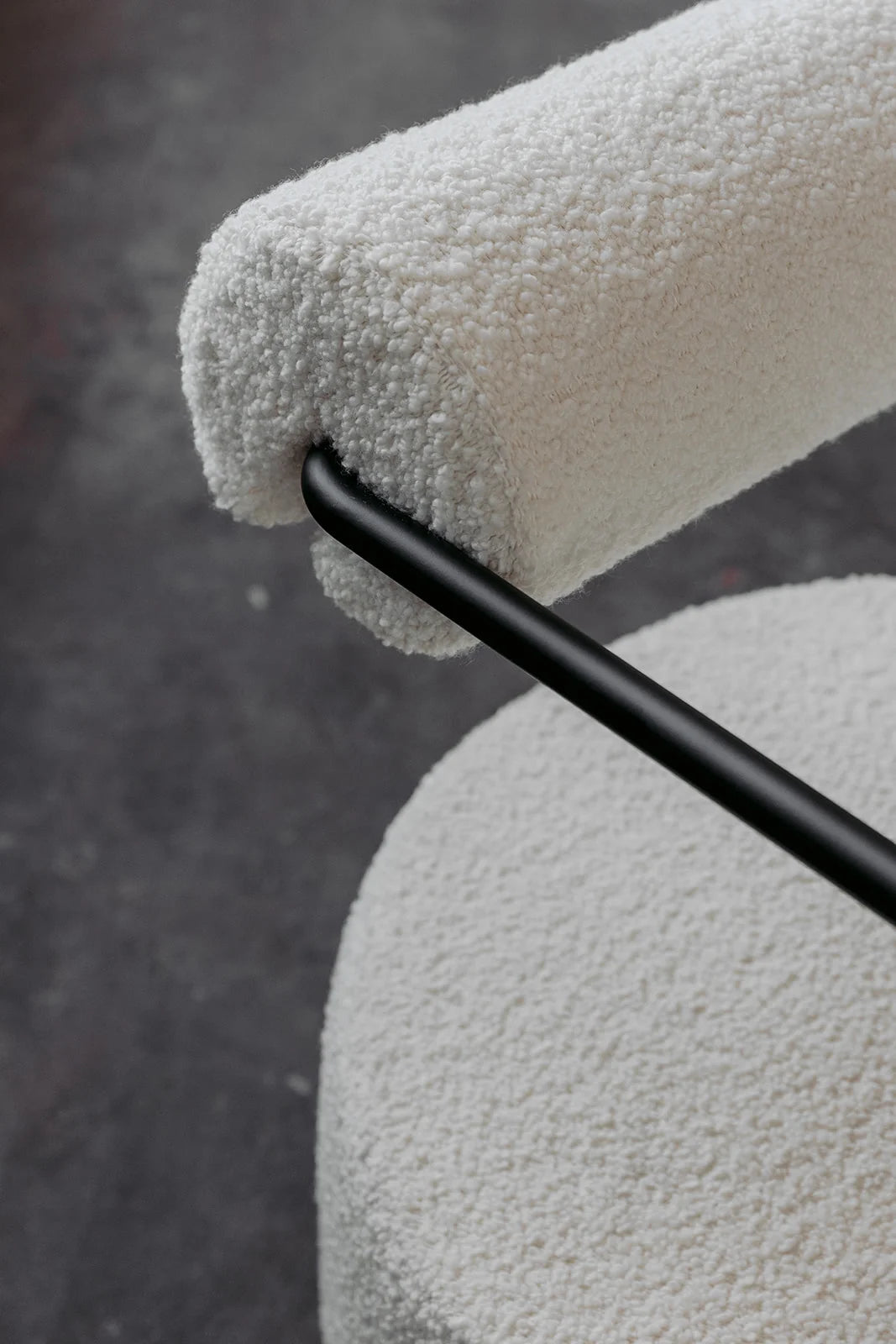 Model dostępny jest w wielu wariantach wykończeń – różne kolory metalowej podstawy oraz szeroki wybór tkanin umożliwiają stworzenie fotela tapicerowanego dopasowanego do indywidualnego stylu wnętrza. Fotel Saffron świetnie wpisuje się w estetykę modern, japandi, soft loft czy eklektycznych aranżacji, stając się ich mocnym, dekoracyjnym akcentem.