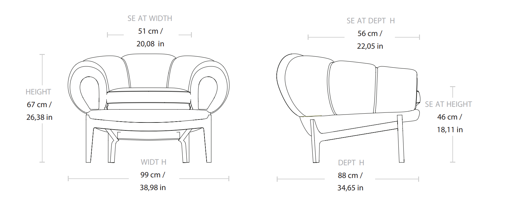 Fotel CROISSANT tapicerowany z orzechową podstawą
