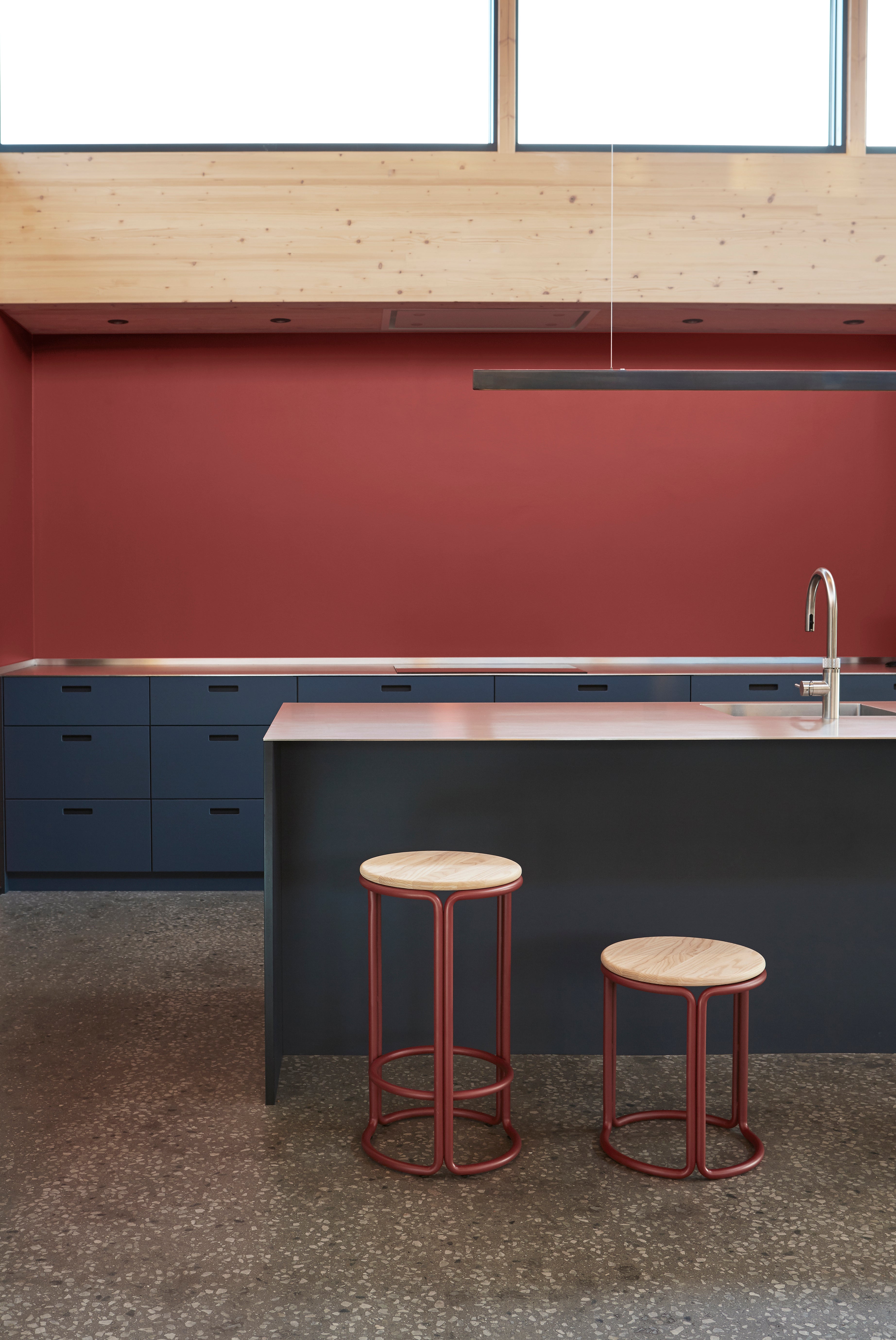 Hoker Hardie to minimalistyczny projekt o ponadczasowym charakterze, który łączy prostotę formy z funkcjonalnością. Klasyczne okrągłe siedzisko wspiera się na trzech giętych, stalowych nogach rurowych, które zostały dodatkowo połączone, aby zwiększyć stabilność i trwałość konstrukcji. To charakterystyczny zabieg podkreślający solidność i niezawodność mebla.