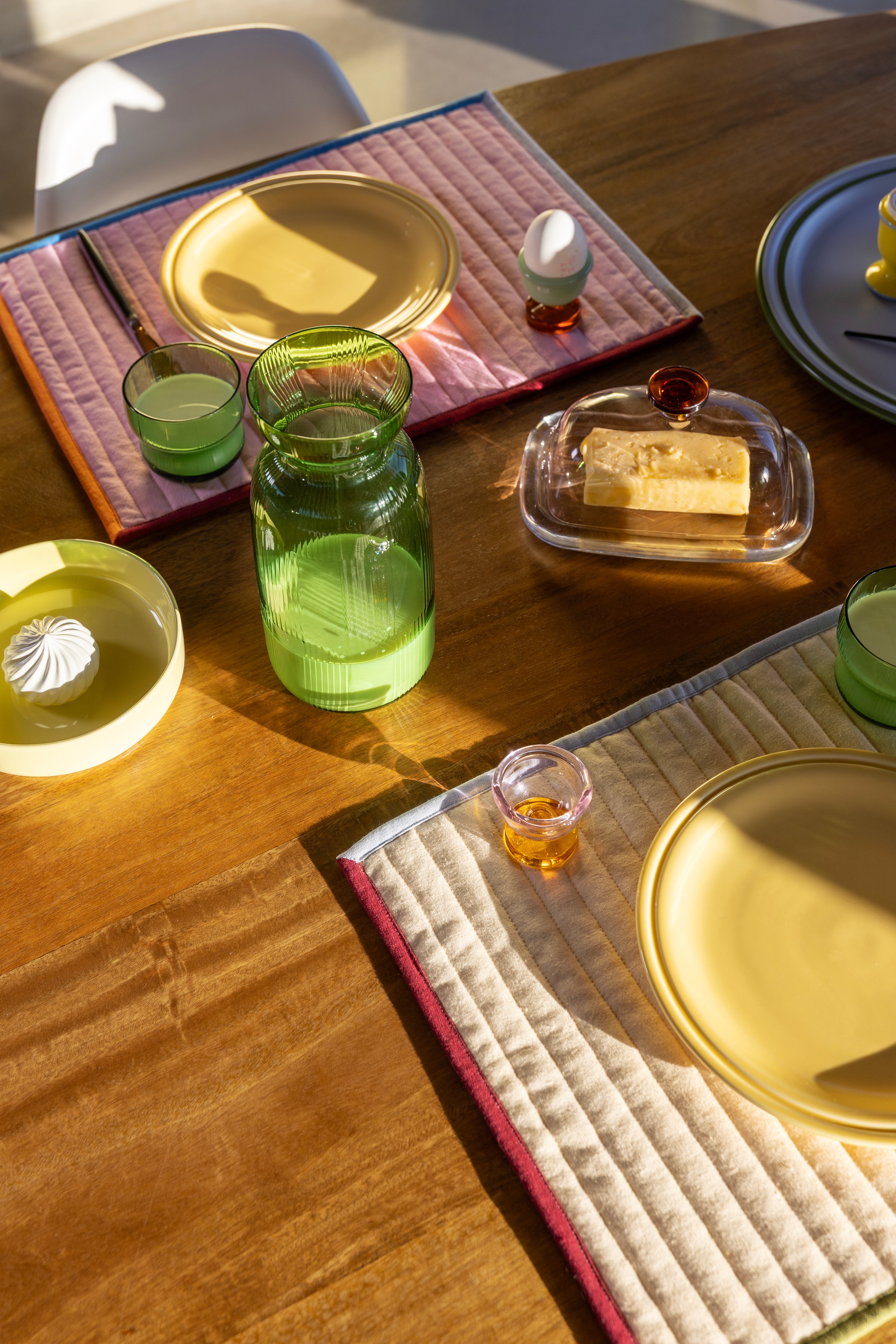 Karafka Circus doda kolorowego akcentu do Twojego stołu. Jej zakrzywiona forma i pionowe paski inspirowane wzorem namiotu cyrkowego sprawiają, że karafka przyciąga wzrok i nadaje każdemu posiłkowi wyjątkowy charakter. Karafka doskonale komponuje się ze szklankami z kolekcji, tworząc spójną i kolorową aranżację stołową.
