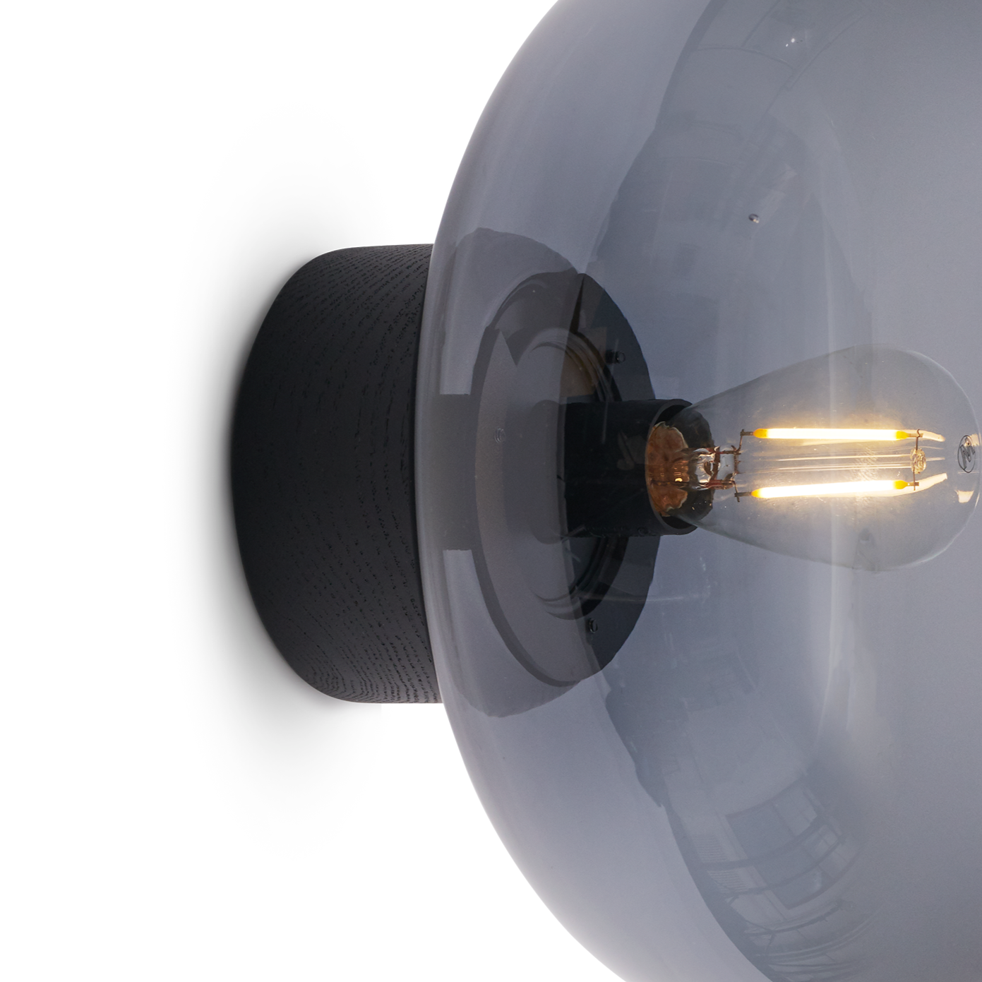 Kinkiet KARL-JOHAN dymione szkło z czarną dębową podstawą