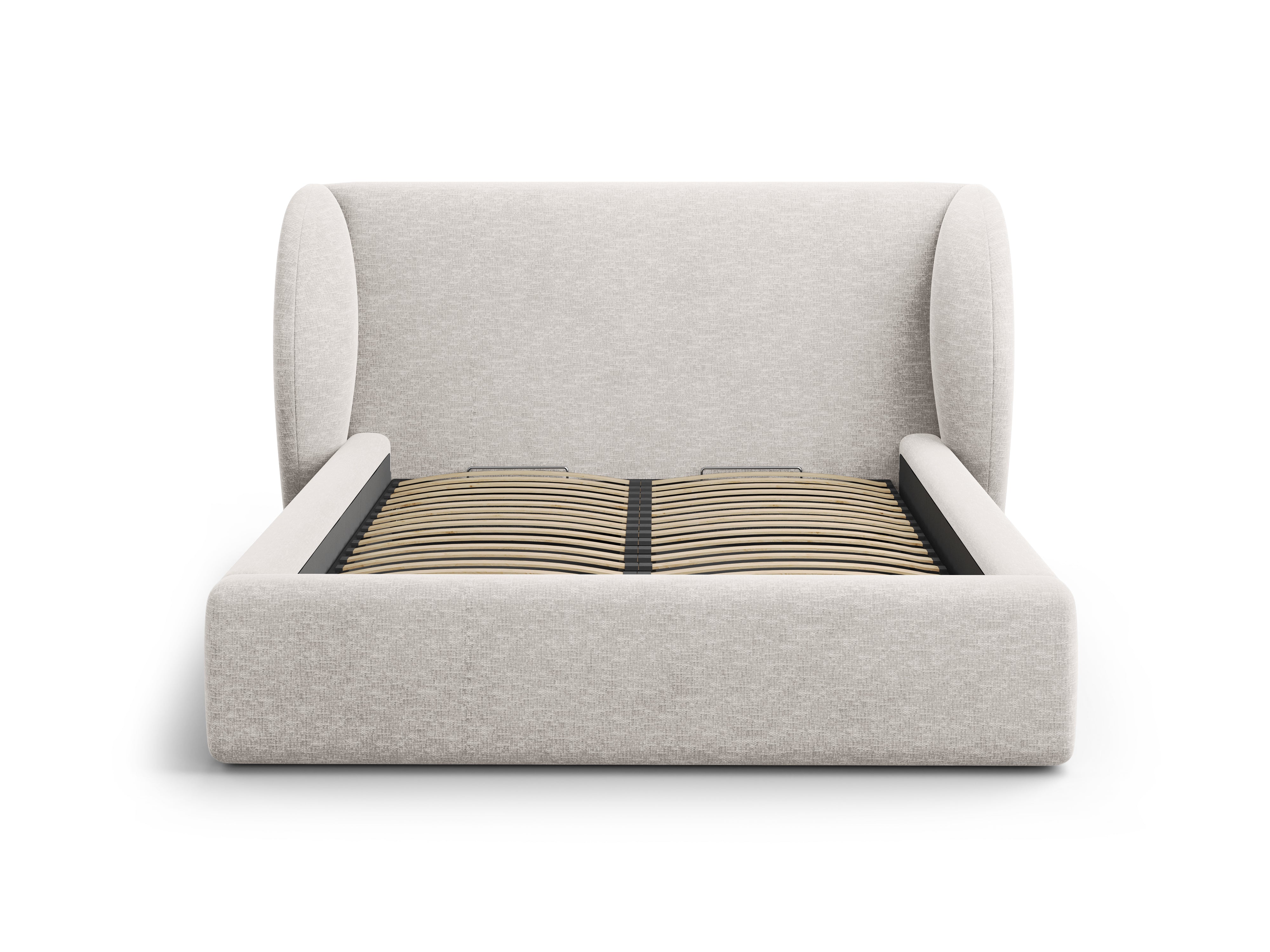 Łóżko Miley jest nie tylko efektowne, ale też praktyczne – wyposażone w pojemny schowek na pościel otwierany od przodu za pomocą podnośników gazowych. To idealny wybór dla osób, które cenią połączenie estetyki, funkcjonalności i komfortu w sypialni.