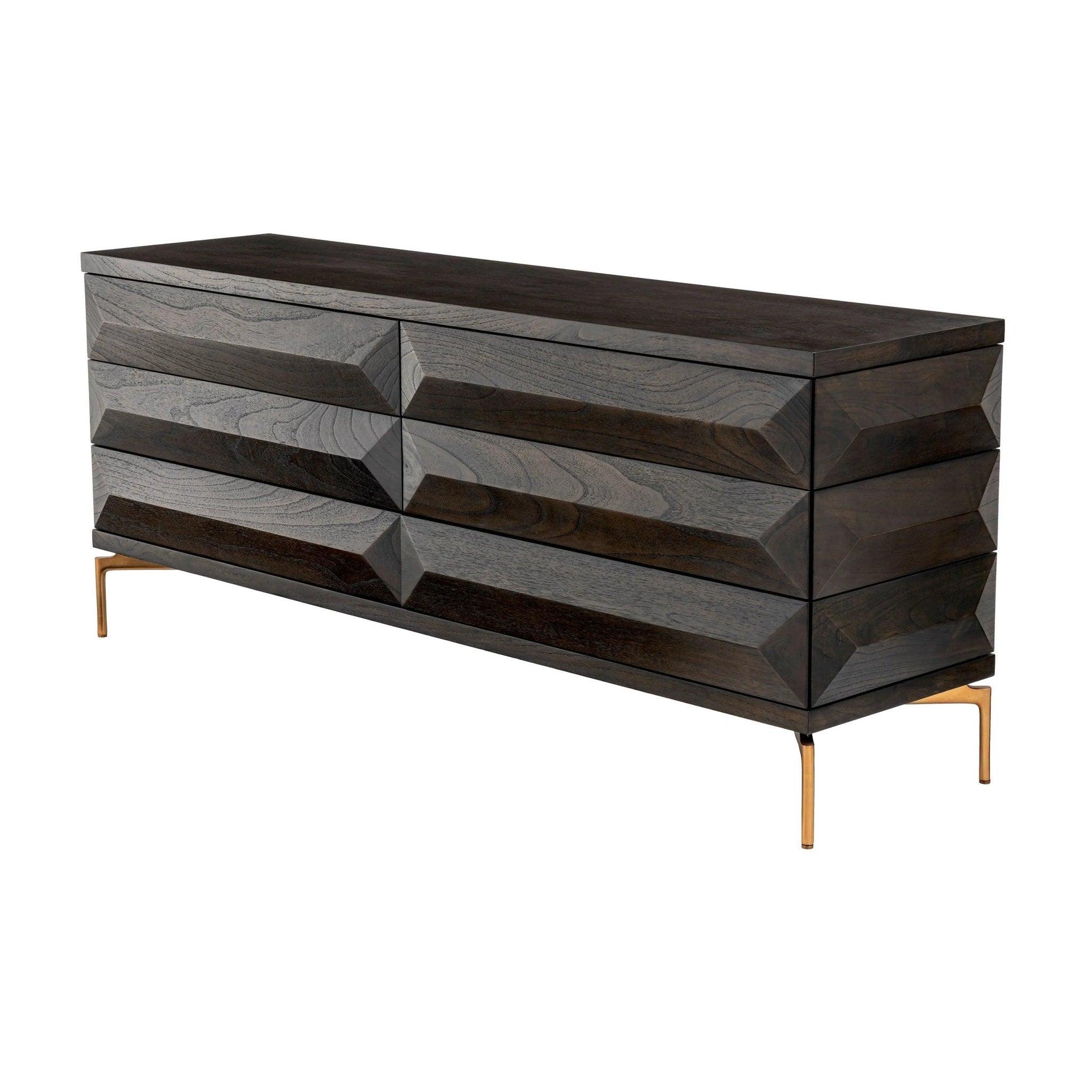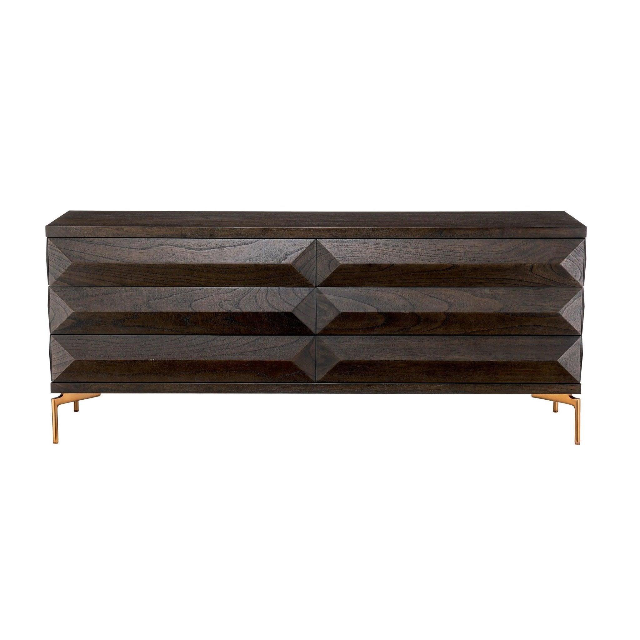 Komoda Denver to perła w świecie nowoczesnych mebli, które łączą tradycję z innowacją. Wyrafinowany fornir z dębu mokka z jego charakterystycznymi słoiami i ciepłym kolorem, doskonale współgra z chłodniejszym blaskiem szczotkowanego mosiądzu, z którego wykonane są nogi komody. Ta kombinacja materiałów daje efekt zarówno nowoczesny, jak i klasyczny, co pozwala na łatwe wprowadzenie dębowej komody Denver do różnorodnych wnętrz.