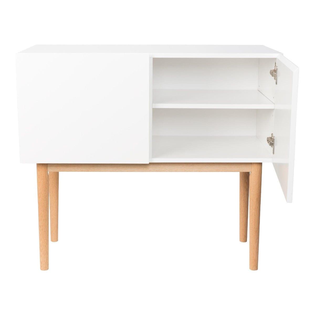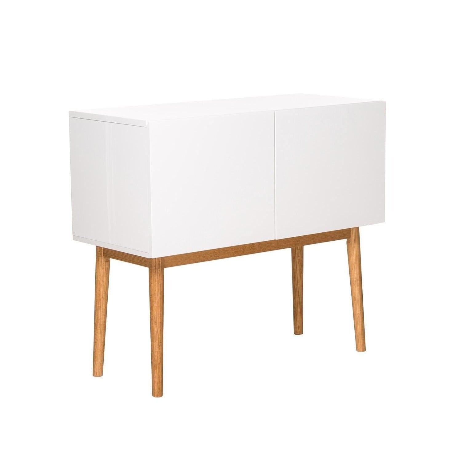Szafka High On Wood to fantastyczne połączenie dębowej podstawy oraz eleganckich, białych frontów, które wykonano na wysoki połysk. Ta nowoczesna, biała szafka będzie idealnym miejscem dla wszystkich niezbędnych drobiazgów w salonie czy jadalni. High on Wood nie tylko pomoże uporządkować przestrzeń, ale podkreśli też charakter wnętrza.