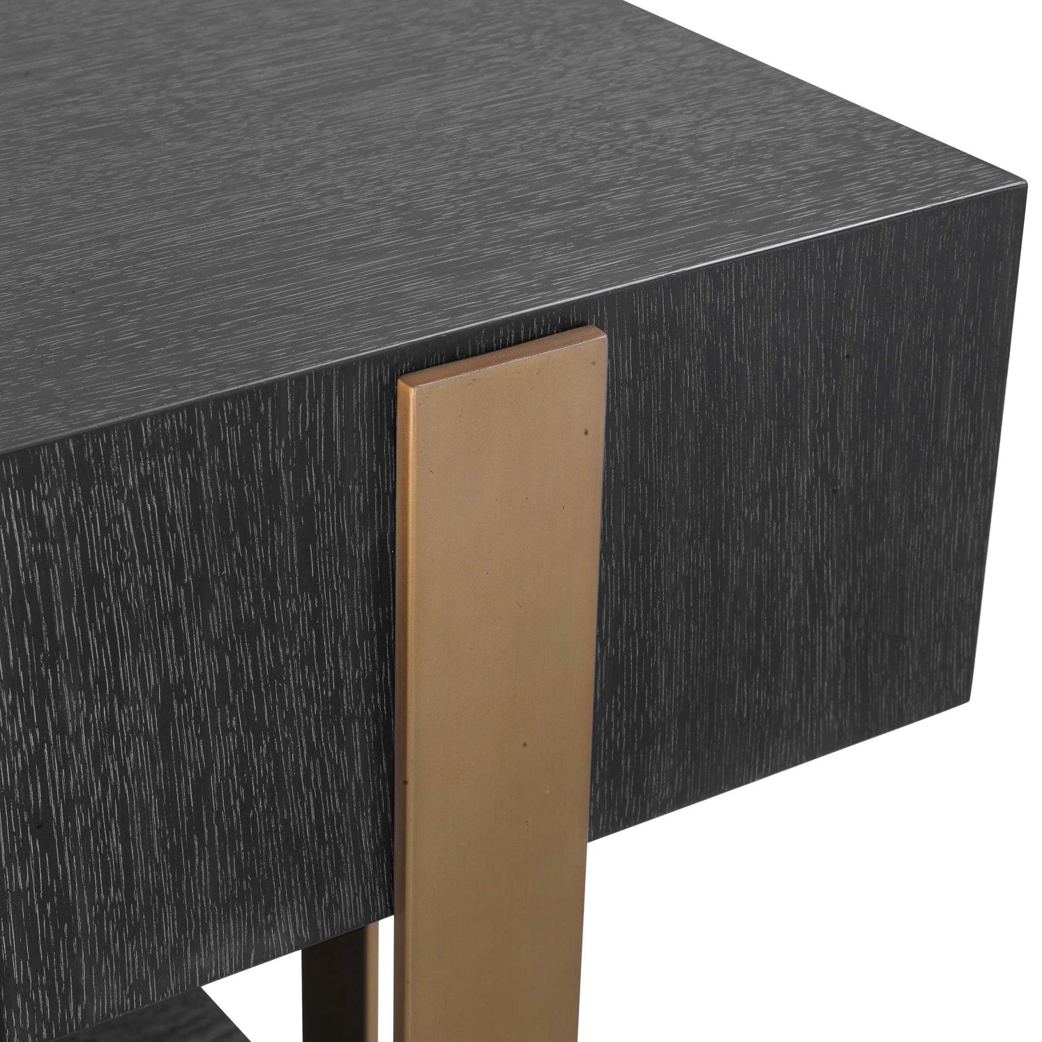 Materiał: Okleina dębowa w kolorze antracytowym, fornir dębowy, wykończenie ze szczotkowanego mosiądzu