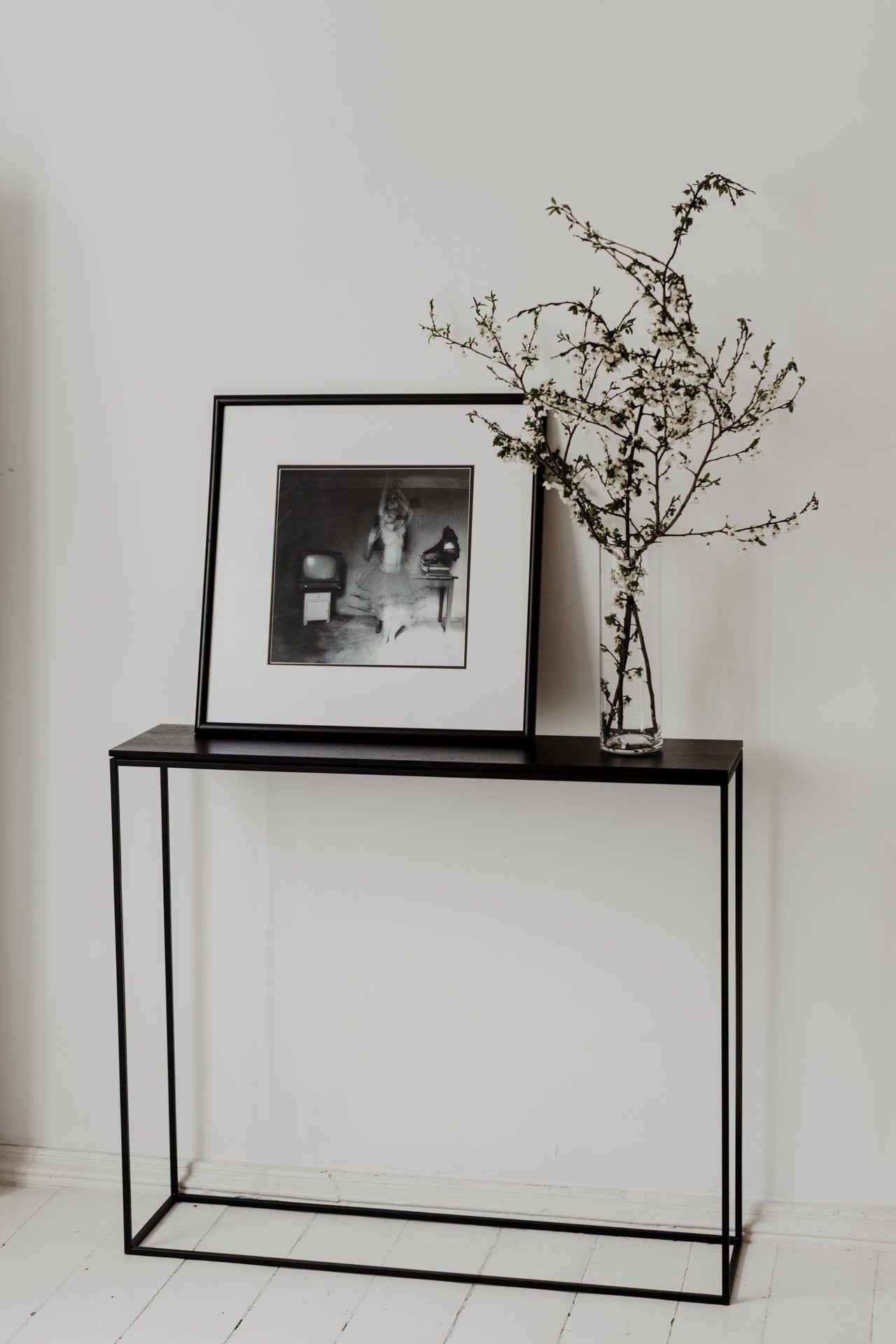Minimalistyczna konsola z eleganckim blatem z forniru. Będzie idealnym rozwiązaniem w każdym nowoczesnym, loftowym czy skandynawskim wnętrzu. Łączy ponadczasową formę, wysoką jakość wykonania i funkcjonalność.