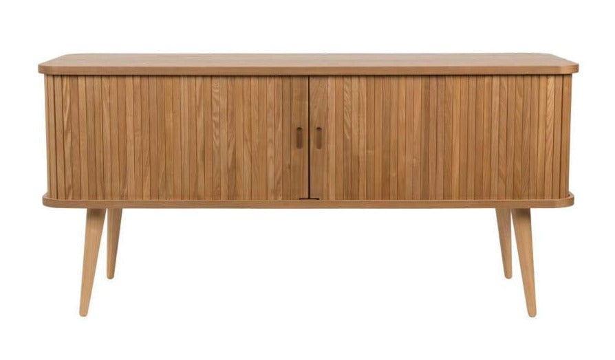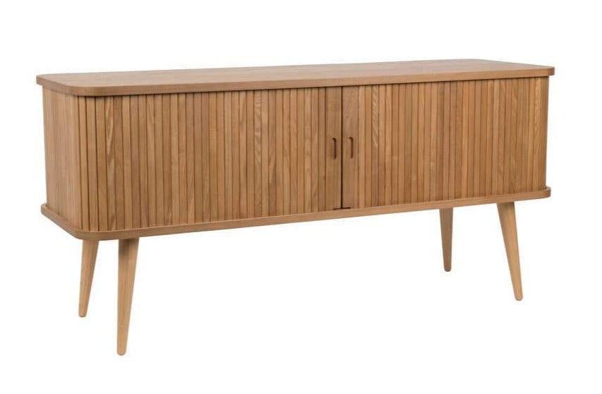 Komoda została wykonana z wytrzymałej płyty MDF pokrytej drewnem jesionu. Nogi wykonano z litego drewna kauczukowego. Barbier pięknie dopełni wnętrze jadalni, sypialni, czy przedpokoju. Dodatkowo stworzy niepowtarzalną aranżację z pozostałymi meblami z tej samej serii.