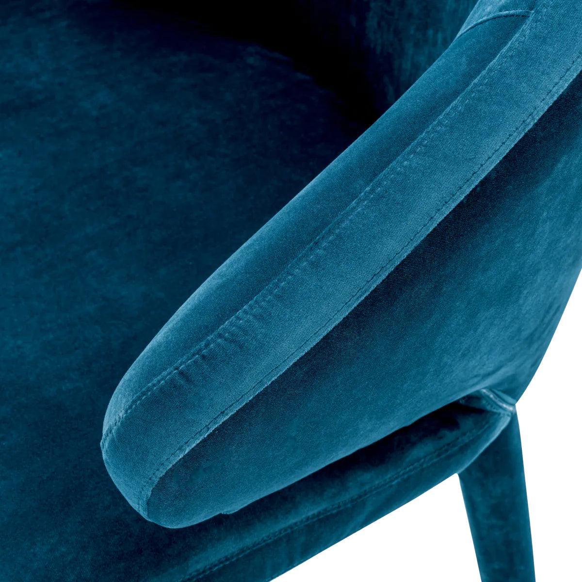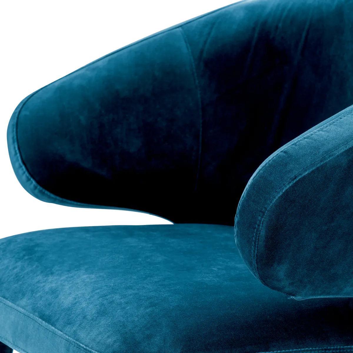 Jednak to, co wyróżnia ciemnoniebieskie krzesło Cardinale na tle innych mebli, to jego niesamowita turkusowa aksamitna tapicerka Roche. Ten głęboki, nasycony kolor przyciąga wzrok i dodaje wnętrzom wyjątkowego charakteru. Aksamitna powierzchnia jest niezwykle miła w dotyku i dodaje krzesłu luksusowego wyglądu.