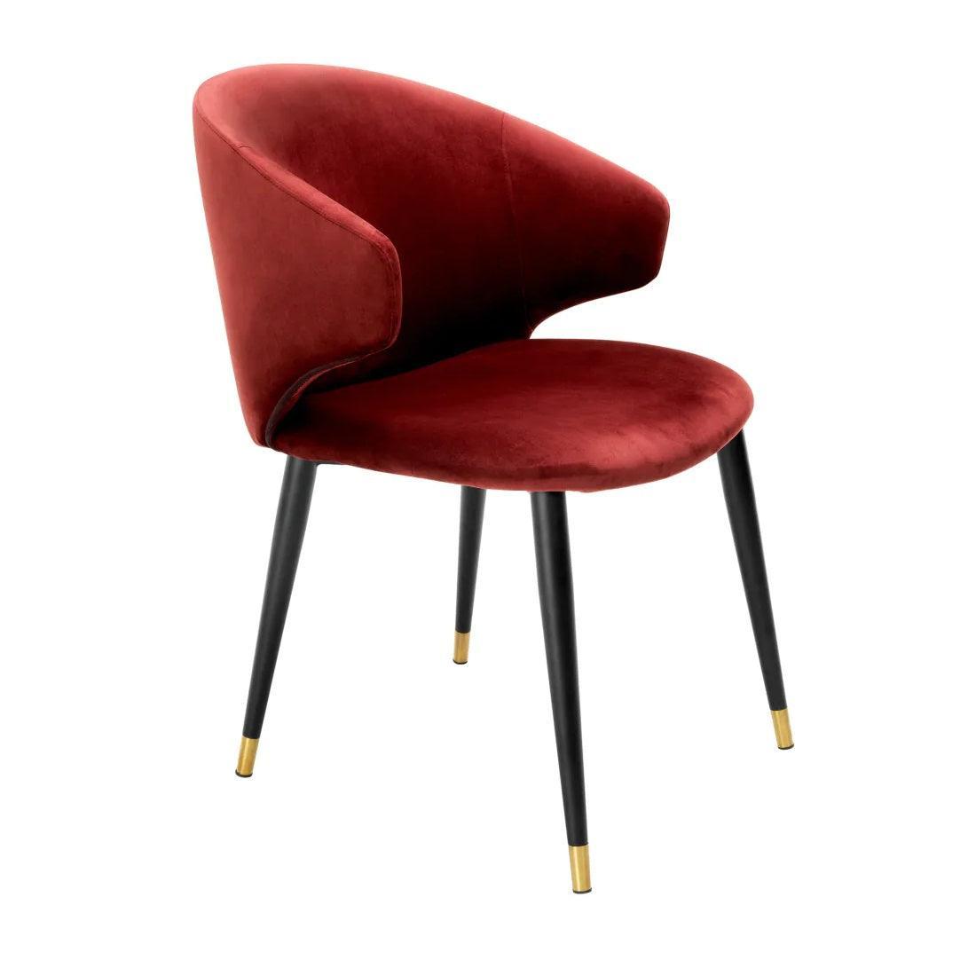 Jego rama jest niczym sylwetka eleganckiego stroju wieczorowego - przyciąga wzrok, ale nie dominuje. Zwężane nogi, ubrane w mosiężne nakładki, tańczą lekkością przypominającą jazzowe rytmy. A co powiesz na siedzisko? Czerwona aksamitna tapicerka krzesła Roche jest niczym miękki, aksamitny głos Elle Fitzgerald - pełen głębi, ciepła i subtelności. Ale Volante nie jest tylko pojedynczym solistą na scenie Twojej jadalni. Połącz różne krzesła z tej serii, a stworzysz harmonijny chór, który zaśpiewa pieśń uroczego stylu vintage, zachwycając każdego gościa.