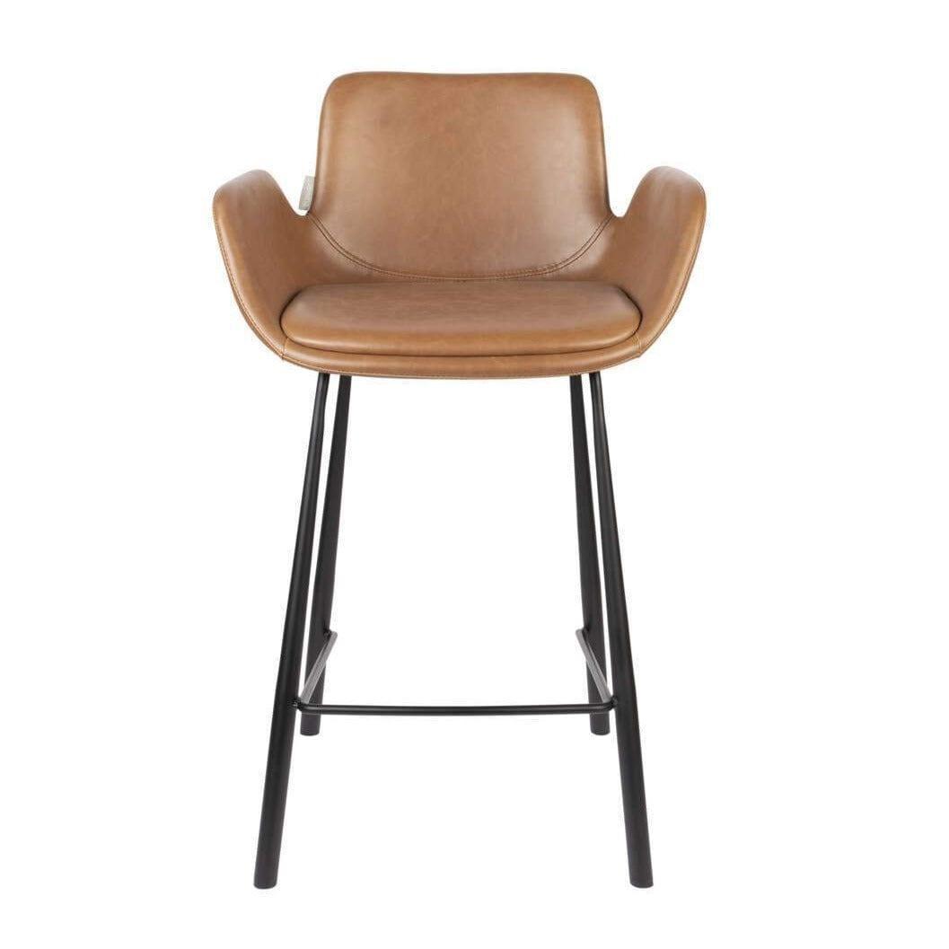 Siedzisko wykonano z brązowej ekoskóry, która dodaje całości elegancji i charakteru. Będzie to świetny dodatek do wnętrz retro, vintage, czy loftowych.