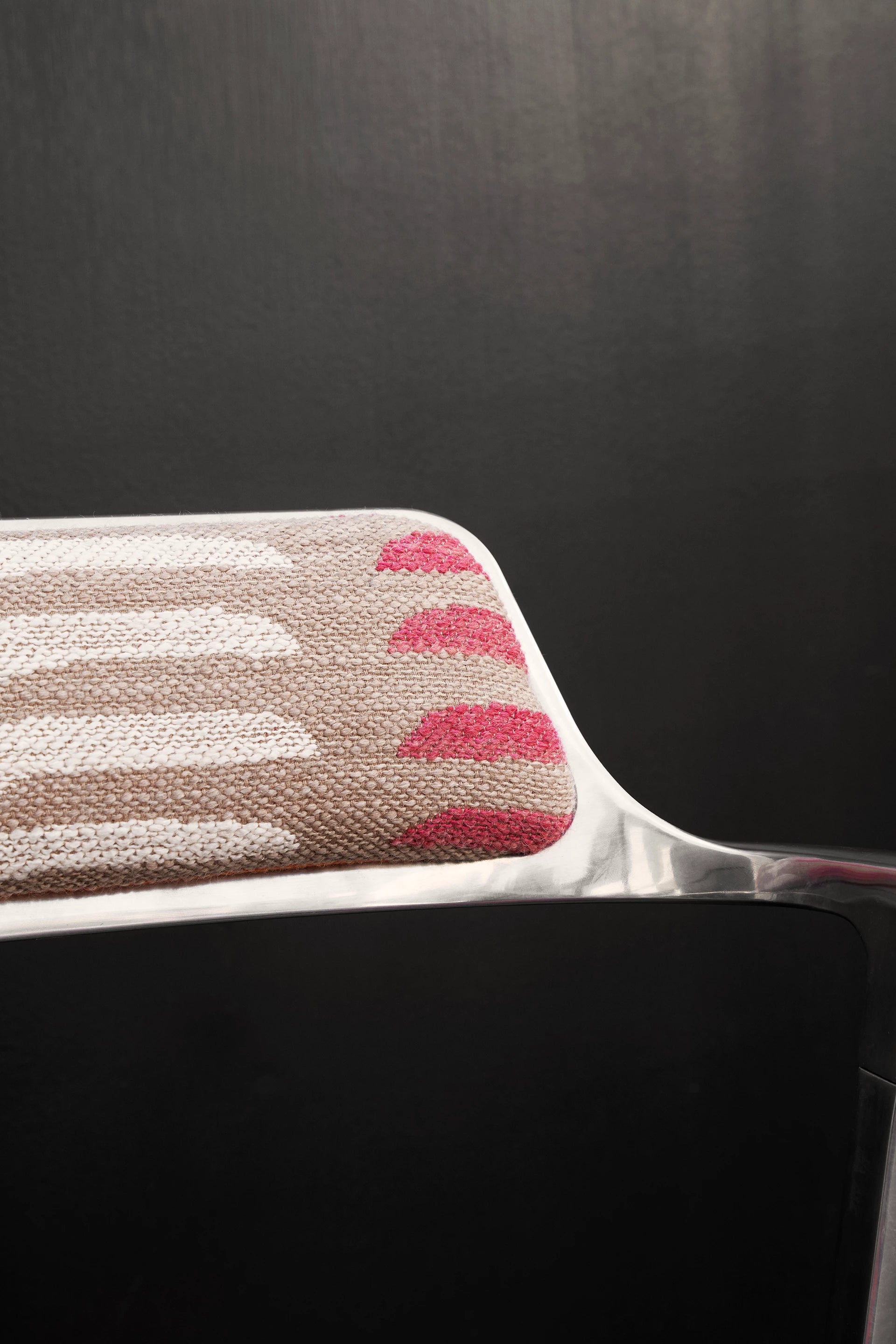 Materiały: Polerowane aluminium, tkanina tapicerska