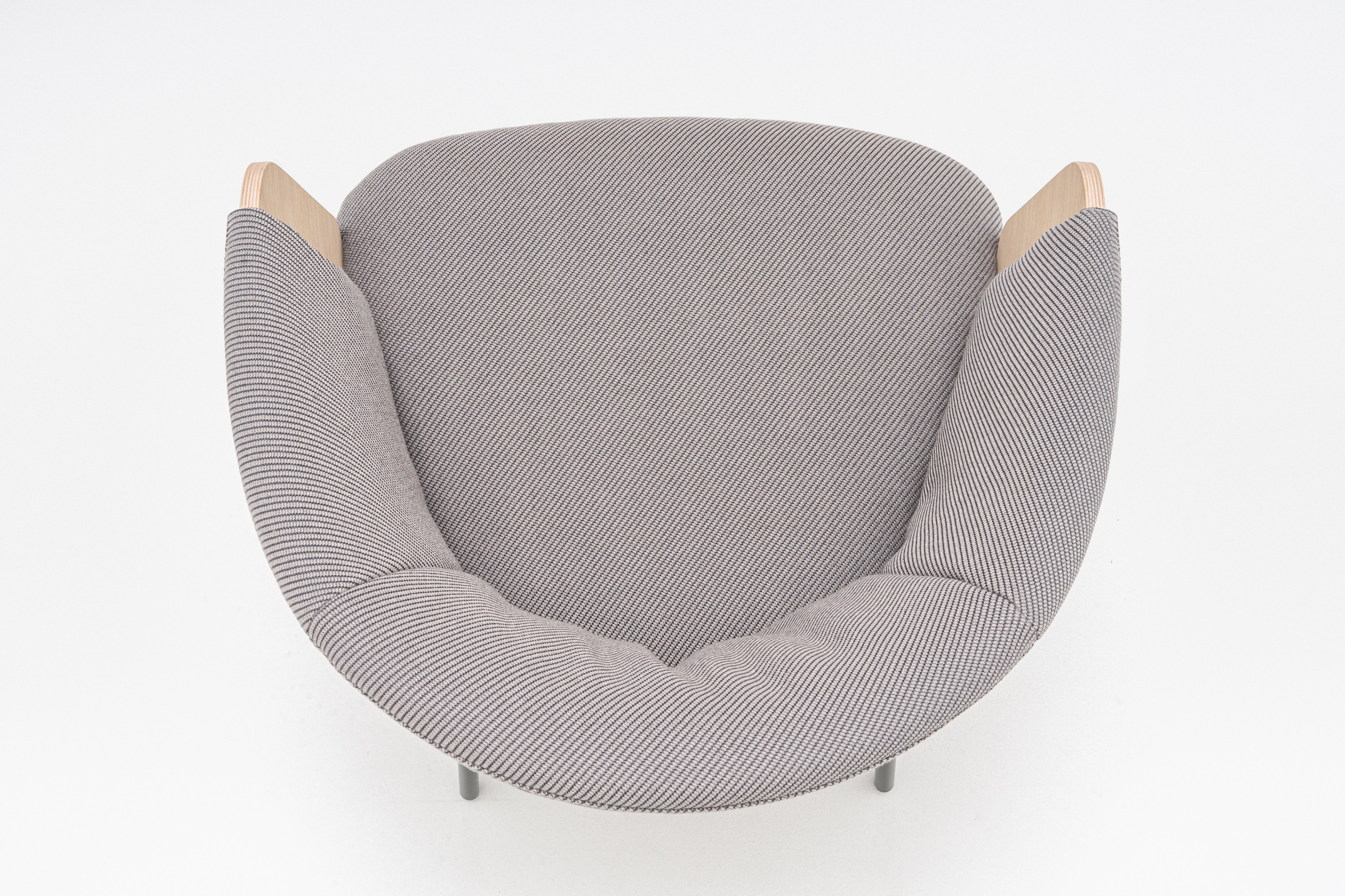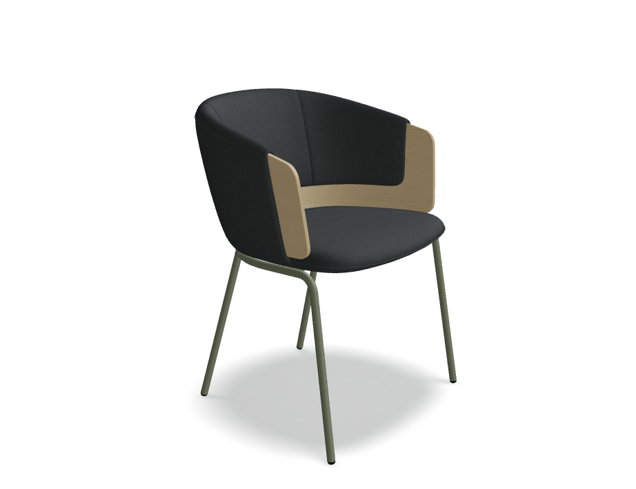 Poduszki na siedzisku i oparciu zapewniają wygodę nawet podczas długiego użytkowania, a zintegrowane podłokietniki pozwalają ramionom odpocząć, co zwiększa komfort siedzenia. Konstrukcja ze sklejki i subtelne przeszycia z marszczeniami nadają krzesłu nowoczesny, a zarazem lekki wygląd, kontrastując z surowymi, drewnianymi detalami. Collar to doskonały wybór do przestrzeni konferencyjnych, hoteli, restauracji, a także do domowych stref lounge.