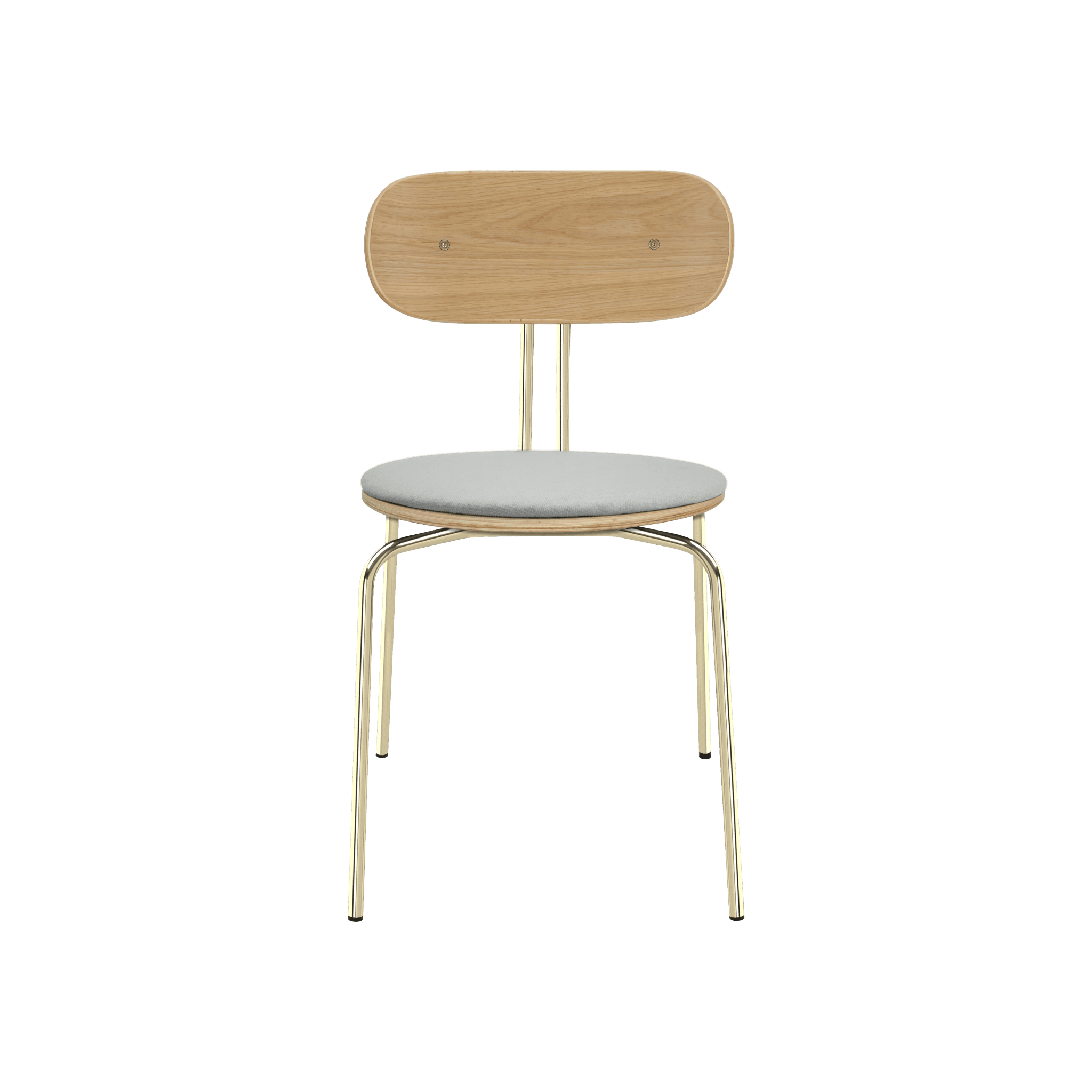 Krzesło Curious to eleganckie, lekkie i minimalistyczne meble, wykonane z forniru dębowego. Jest dostępne z mosiężnymi lub czarnymi nogami, a opcjonalna poduszka siedziska zapewnia dodatkowy komfort. Można wybrać poduszkę spośród 17 kolorów tkaniny Horizons, wykonanej w 100% z recyklingu, a także w brązowym lub białym odcieniu tkaniny Teddy Bear.