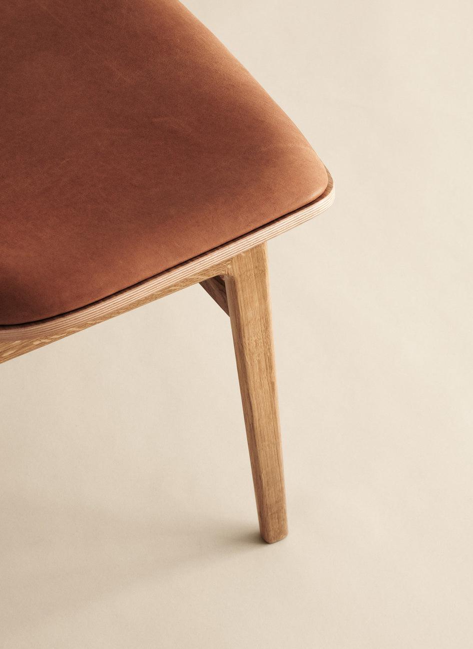 Materiał: drewno dębowe z certyfikatem FSC, tapicerowany wysokiej jakości ekologiczną skórą lub tkaniną
