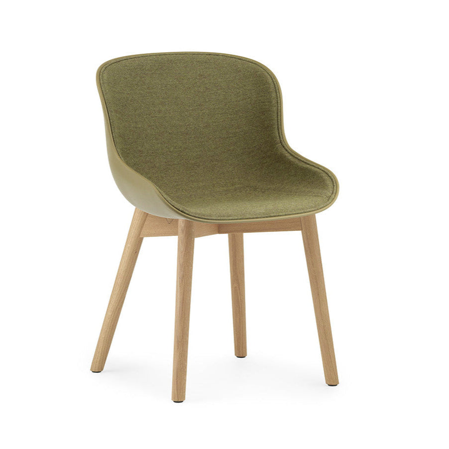 Krzesło tapicerowane HYG oliwkowe z naturalną dębową podstawą