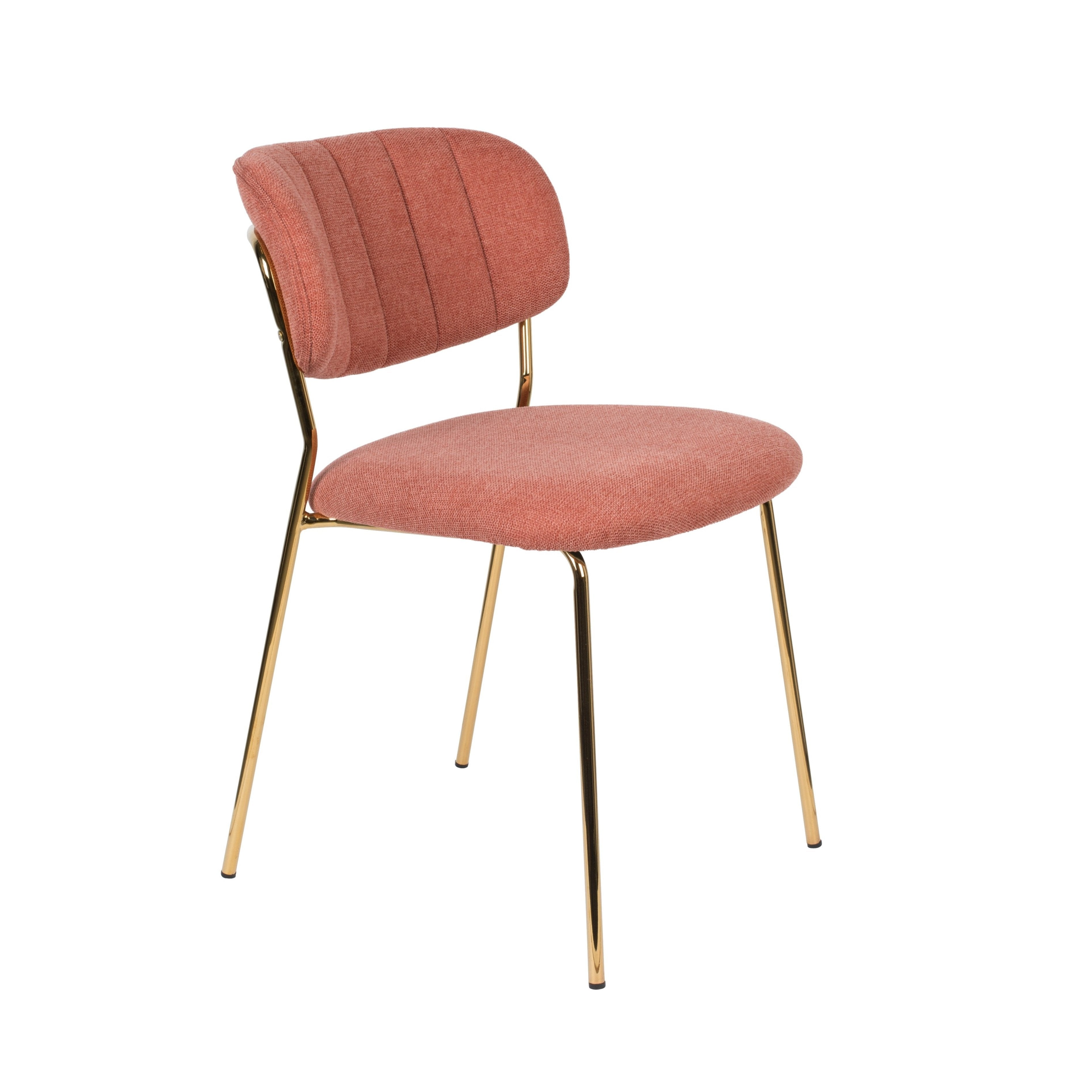 Krzesło Jolien to idealne uzupełnienie nowocześnie urządzonej jadalni czy salonu, świetnie pasując również do kobiecego gabinetu czy salonu kosmetycznego. Jego stabilność zapewniają cienkie, metalowe nogi pomalowane na połyskujący złoty kolor, dodające luksusowego wyglądu.