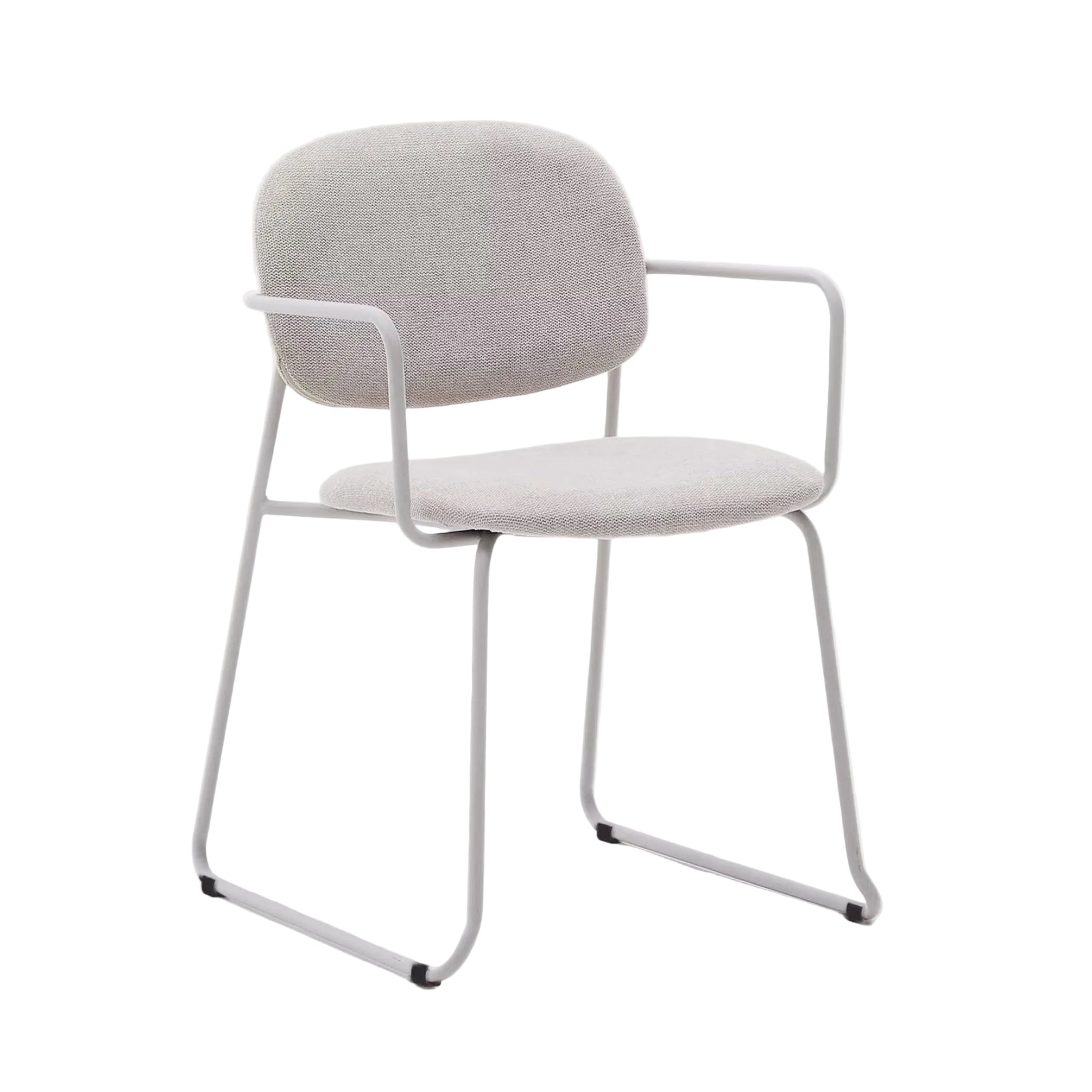 Metalowe nogi z mikroteksturowanym, beżowym wykończeniem nadają konstrukcji lekkości wizualnej, a jednocześnie gwarantują stabilność i trwałość. Certyfikat OEKO-TEX® STANDARD 100 potwierdza bezpieczną produkcję tkaniny, a drewno z certyfikatem FSC Mix Credit pochodzi z odpowiedzialnie zarządzanych lasów. Każde krzesło tapicerowane wyróżnia się naturalnym usłojeniem forniru topolowego, dzięki czemu każdy egzemplarz ma indywidualny charakter. Ochraniacze na nogach zabezpieczają podłogę przed zarysowaniami, łącząc estetykę z funkcjonalnością.