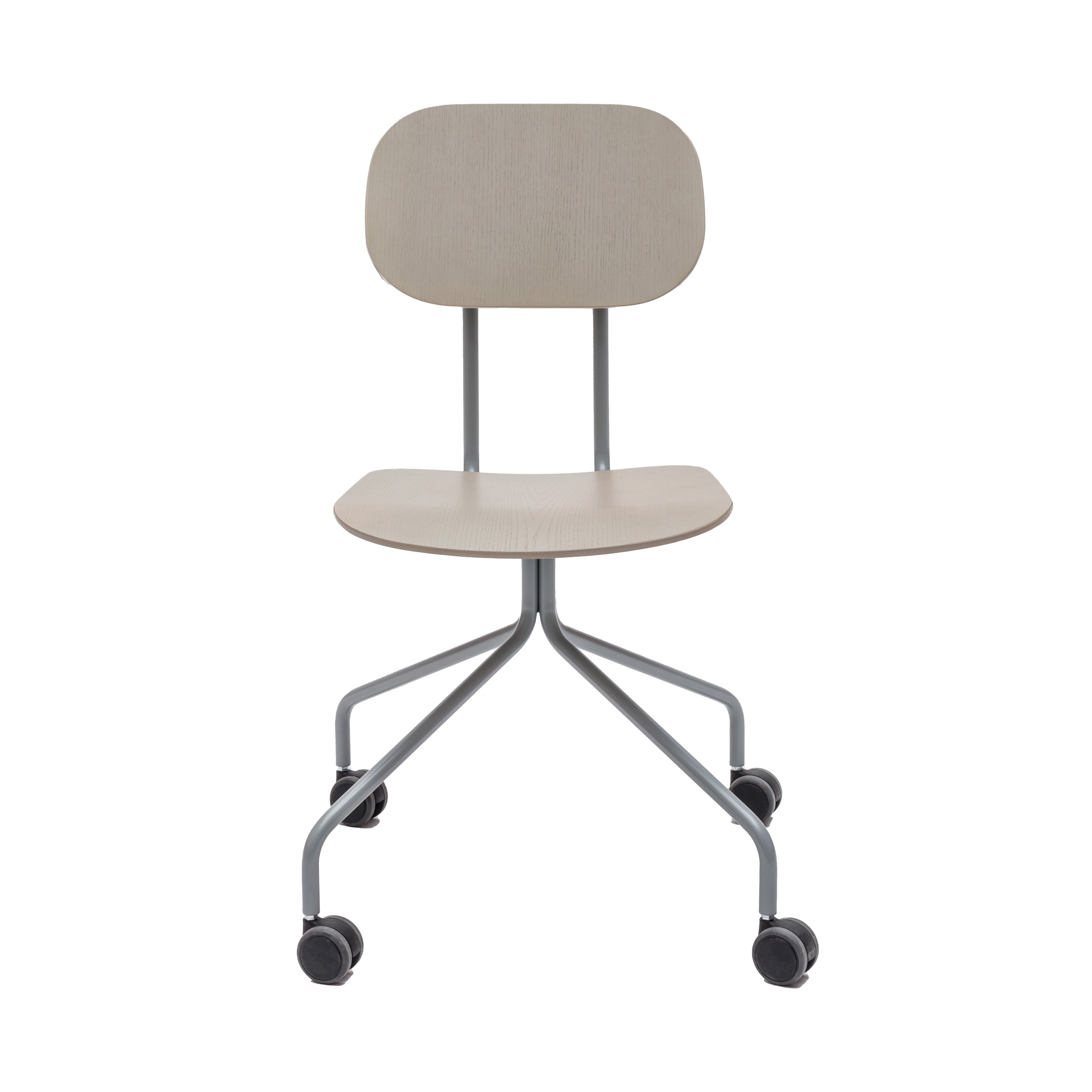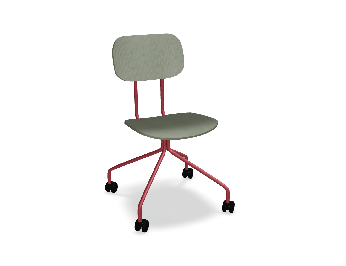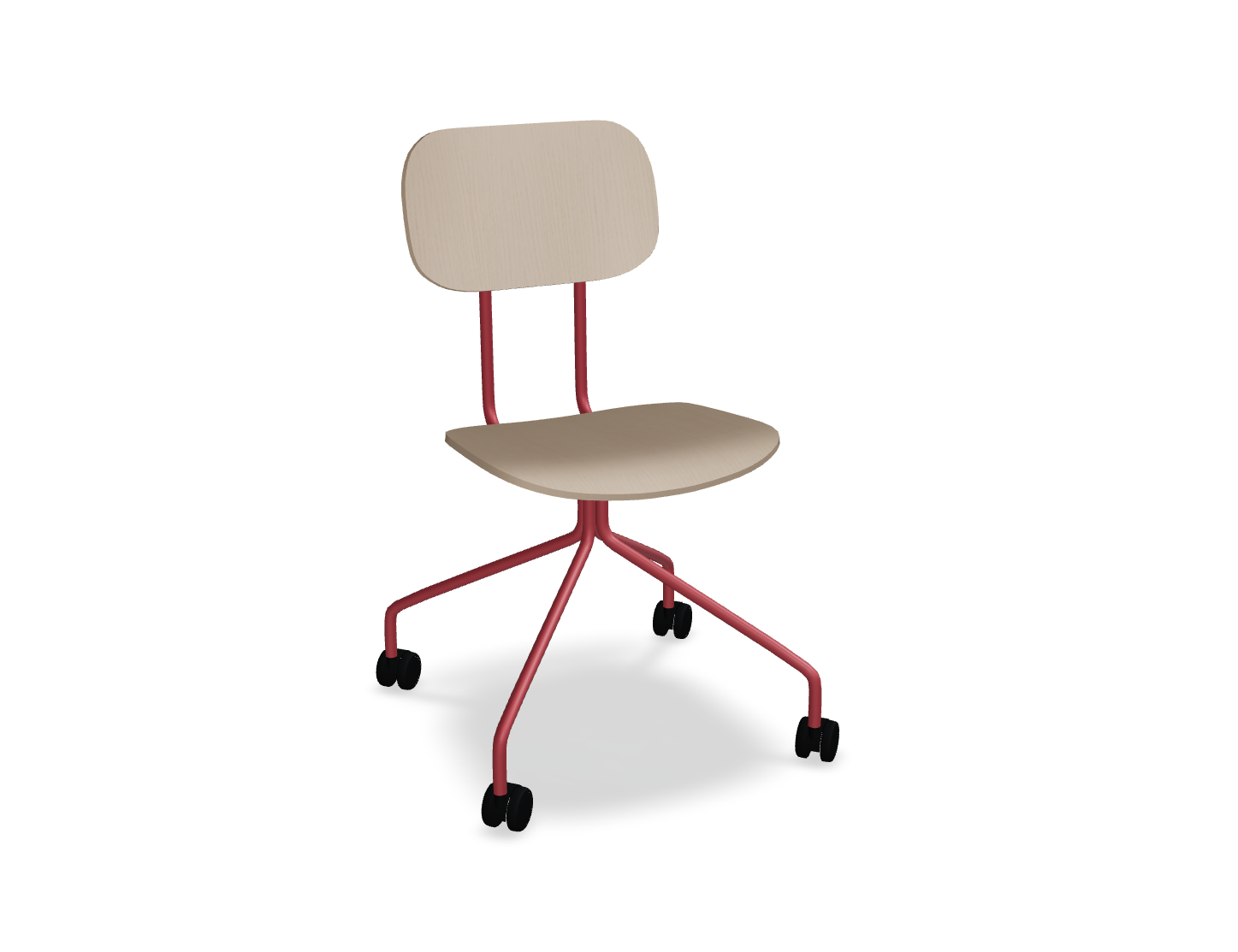 Krzesło dostępne jest z łatwym w pielęgnacji siedziskiem ze sklejki, co czyni je idealnym do przestrzeni, gdzie użytkownicy często się zmieniają. Wysokość siedziska – 460 mm – dopasowana do standardowych stołów, zapewnia wygodę, a mobilna podstawa na kółkach umożliwia swobodne poruszanie się i dostosowanie pozycji do indywidualnych potrzeb użytkownika.