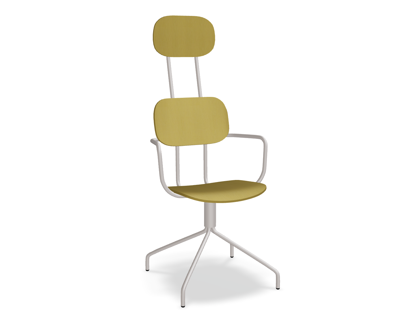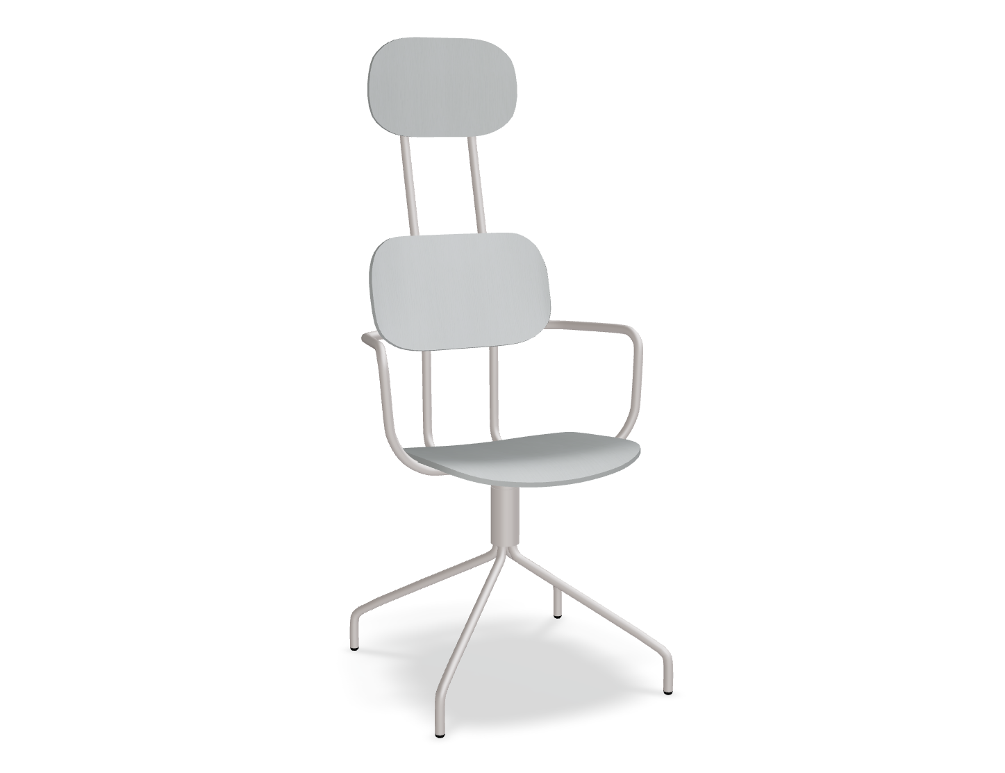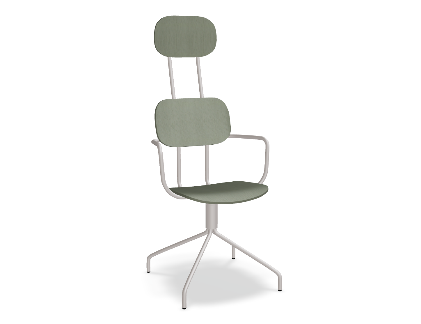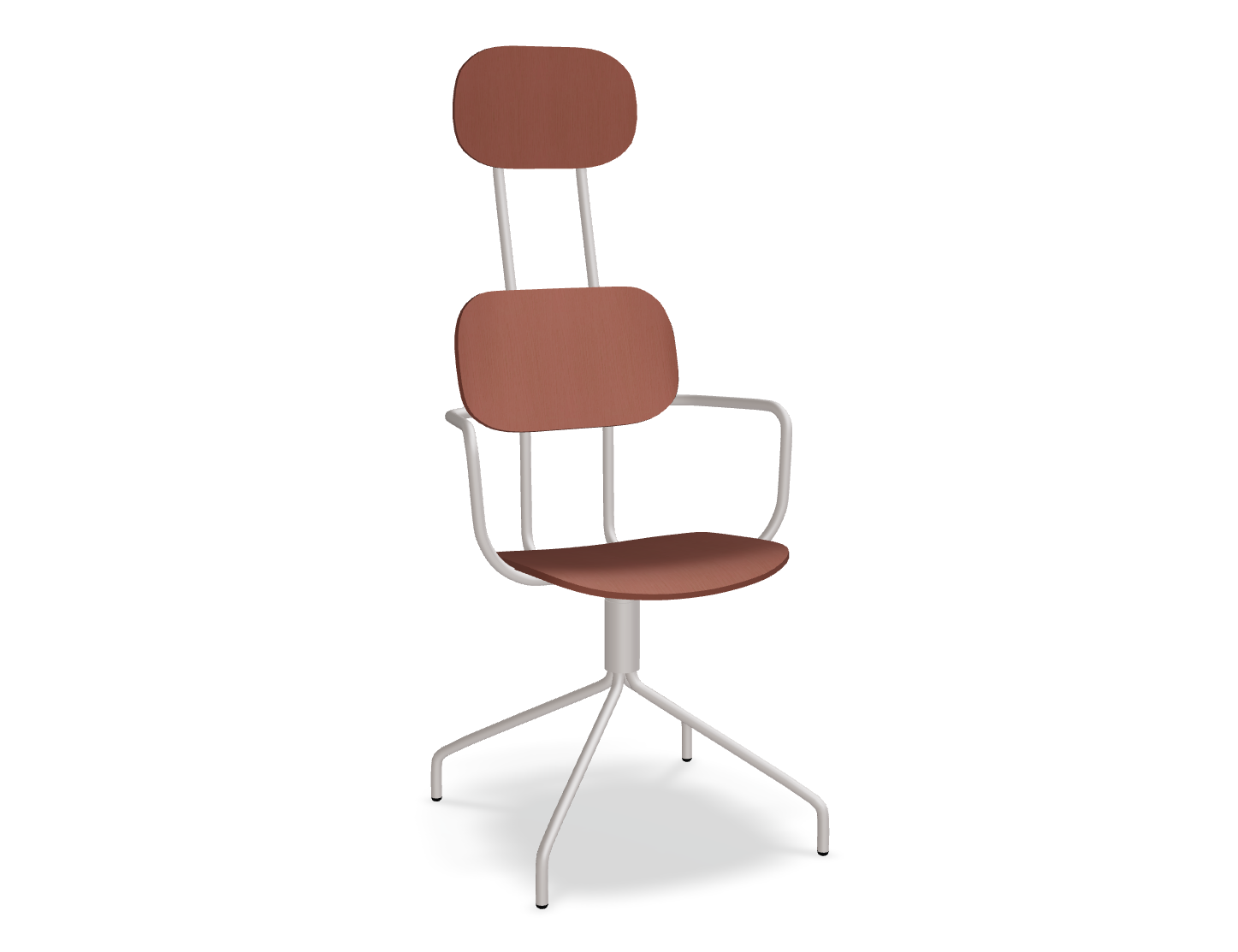 Krzesło obrotowe New School z zagłówkiem, zaprojektowane przez studio Form Us With Love, przyciąga uwagę nowoczesną formą z podwójnym oparciem. Oparcie to nie tylko podkreśla nowoczesny design, ale również zapewnia doskonałe wsparcie dla całych pleców. Podstawa obrotowa gwarantuje swobodę ruchu, a opcjonalne podłokietniki dodatkowo zwiększają komfort użytkowania. Wersja ze sklejki wyróżnia się trwałością i łatwością w pielęgnacji, co czyni ją idealnym wyborem do przestrzeni użytkowanych przez wiele osób.