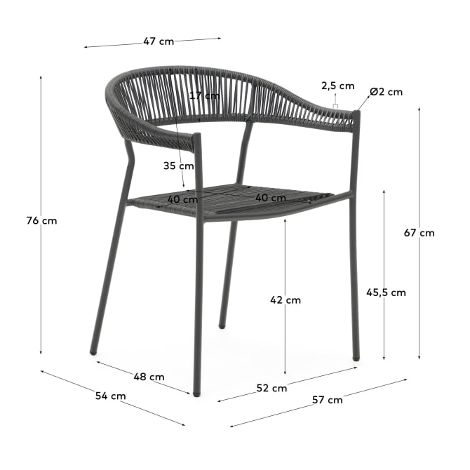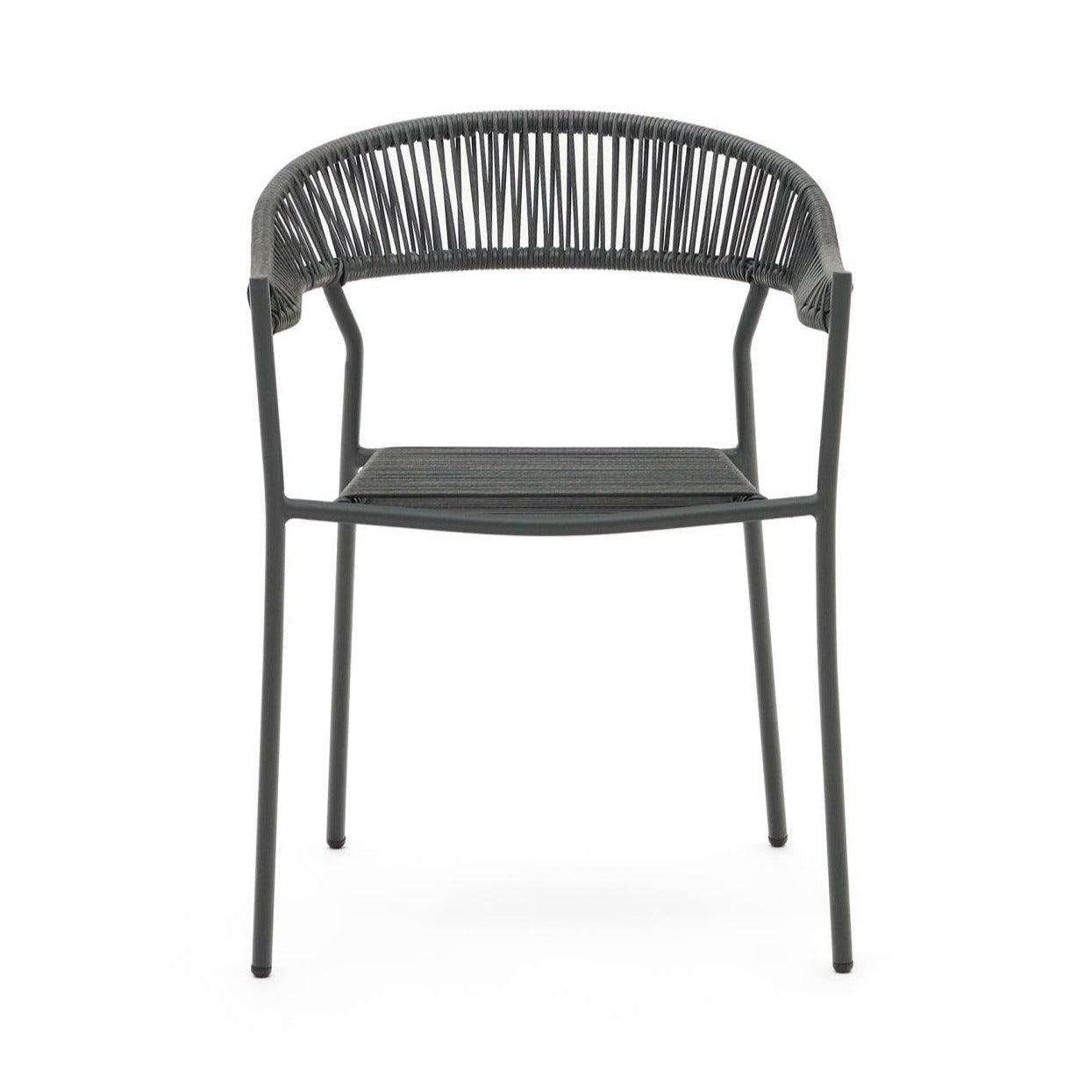 Podczas posiłków na świeżym powietrzu lub w jadalni dodaj swobodnego wyglądu dzięki sznurkowemu oparciu i siedzisku. Komfort i design połączone w tym krześle odpowiednim w 100% na zewnątrz.