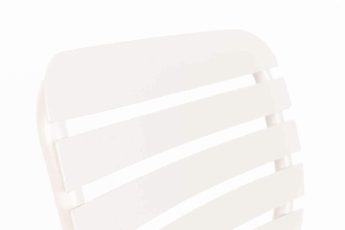 Siedzisko i oparcie wykonano z najwyższej jakości aluminium, co sprawia, że krzesło jest odporne na przeróżne warunki atmosferyczne, takie jak wiatr, deszcz czy intensywne nasłonecznienie.