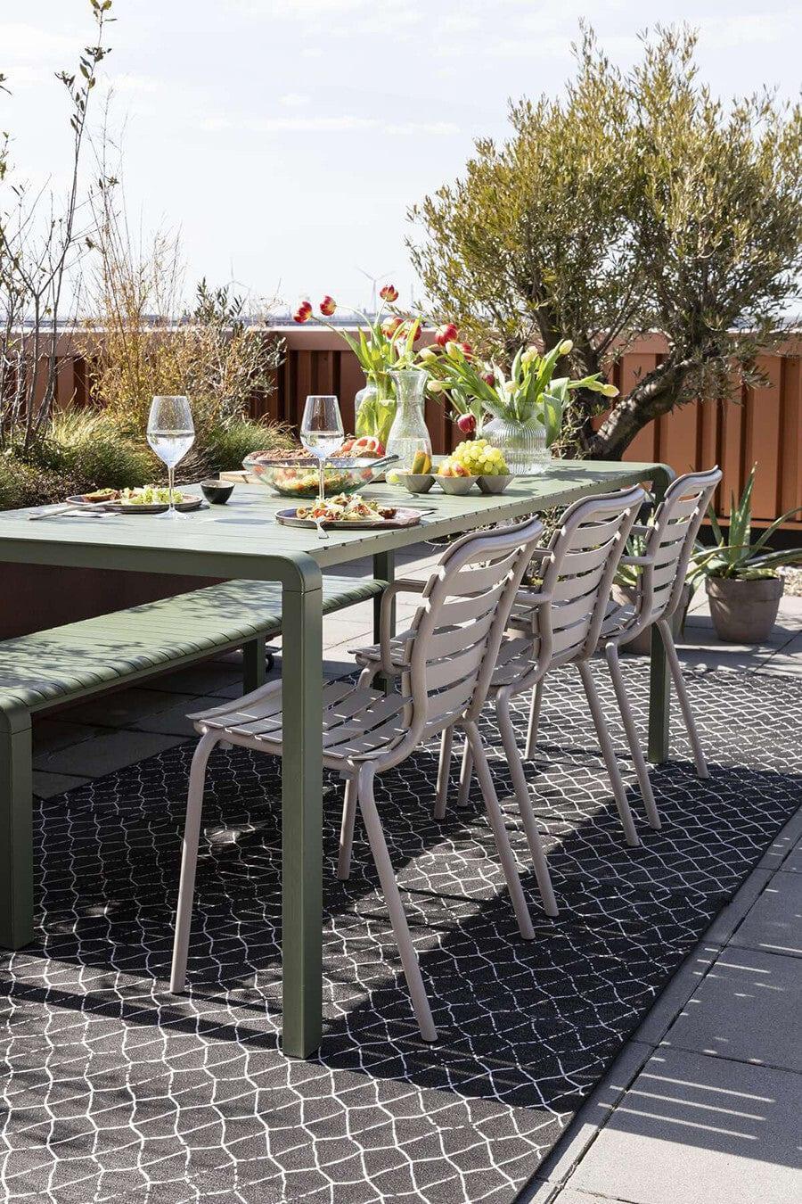 Krzesło zostało wykonane z aluminium malowanego metodą proszkową. Mebel jest dzięki temu przeznaczone do użytku zewnętrznego.