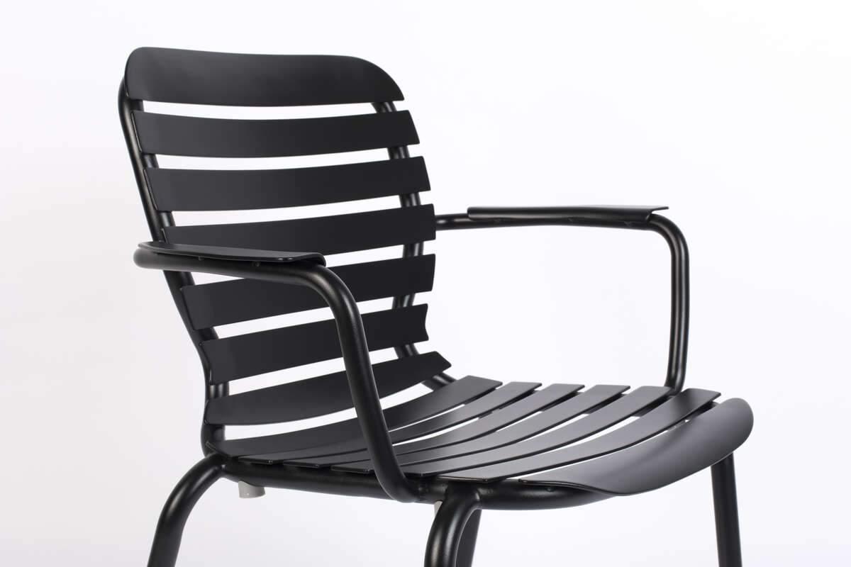 Krzesło ogrodowe Vondel w kolorze czarnym z podłokietnikami to idealna propozycja dla wszystkich, którzy uwielbiają spędzać czas na świeżym powietrzu. Grill ze znajomymi czy poranna kawa w ogrodzie? Każdy powód jest dobry, by wyjść na zewnątrz i odpocząć.