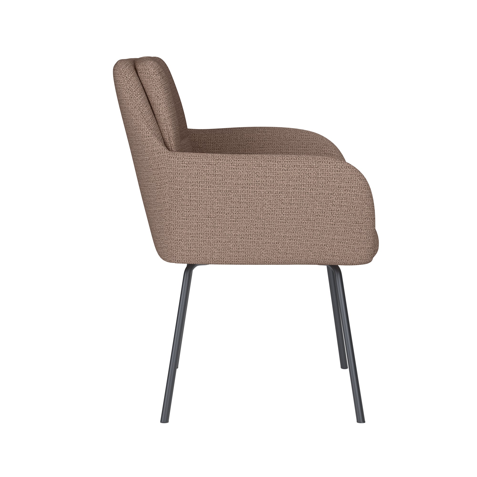 Krzesło z podłokietnikami w taupe kolorze to połączenie nowoczesnej formy i wygody codziennego użytkowania. Tapicerowane miękką tkaniną o wyrazistej fakturze, wyróżnia się delikatnym profilowaniem oparcia oraz subtelnymi przeszyciami, które dodają całości elegancji. Ergonomiczny kształt zapewnia komfort nawet podczas dłuższego siedzenia.