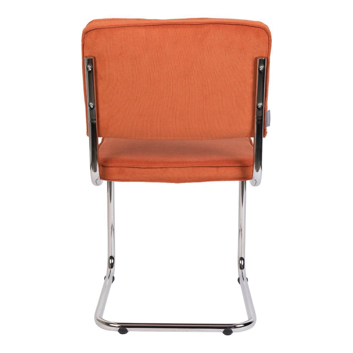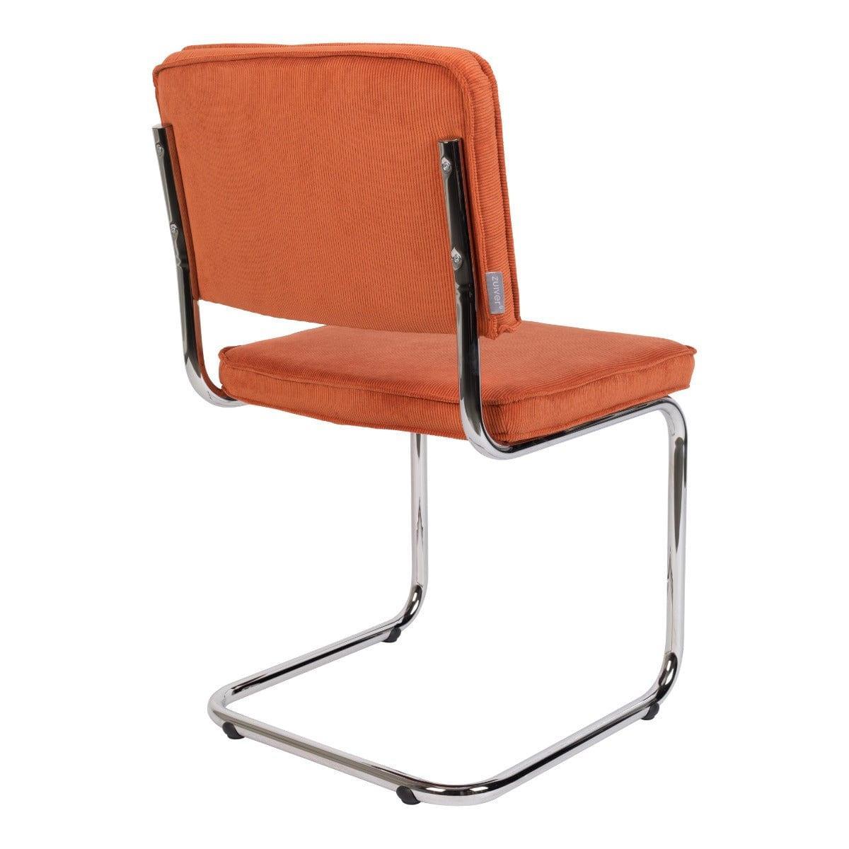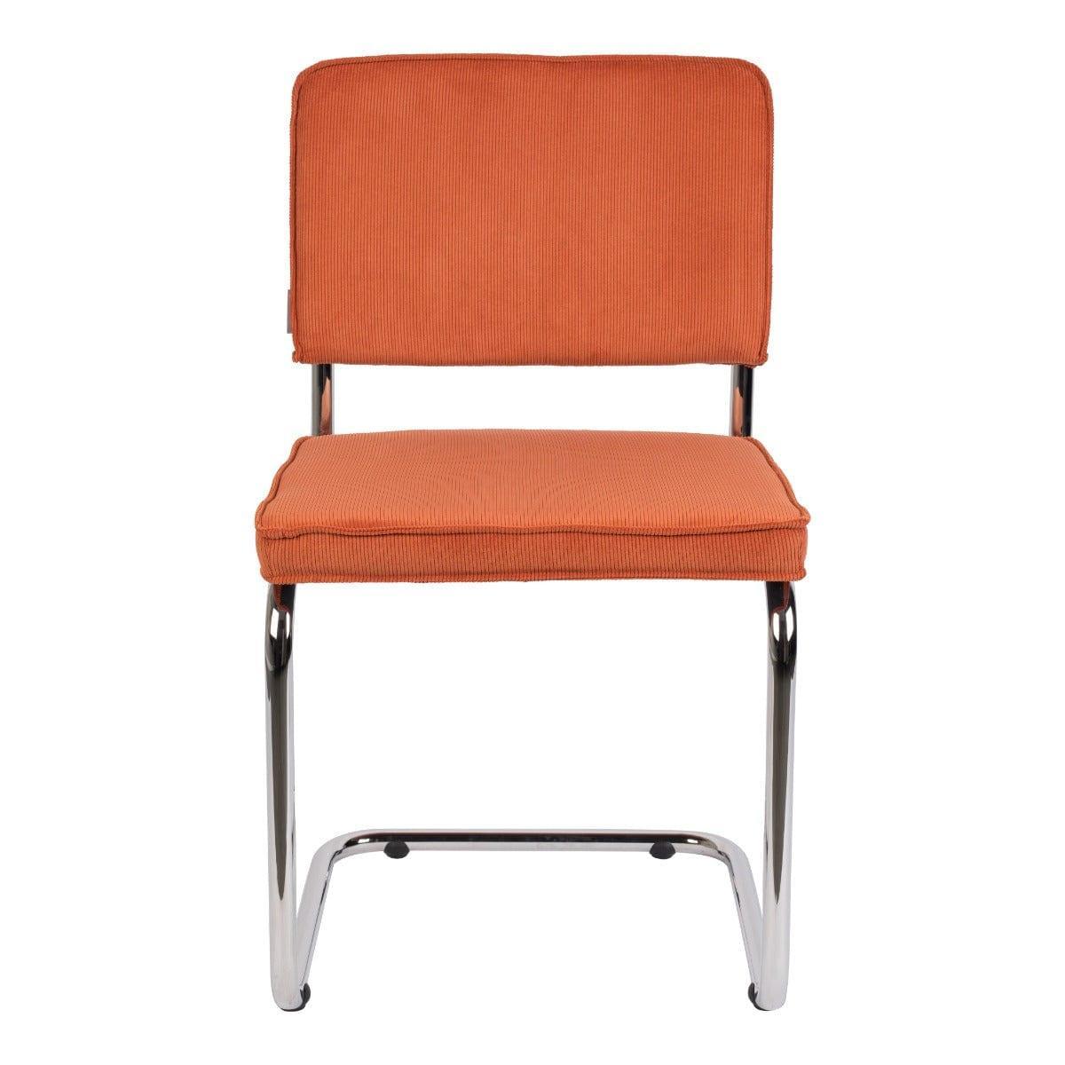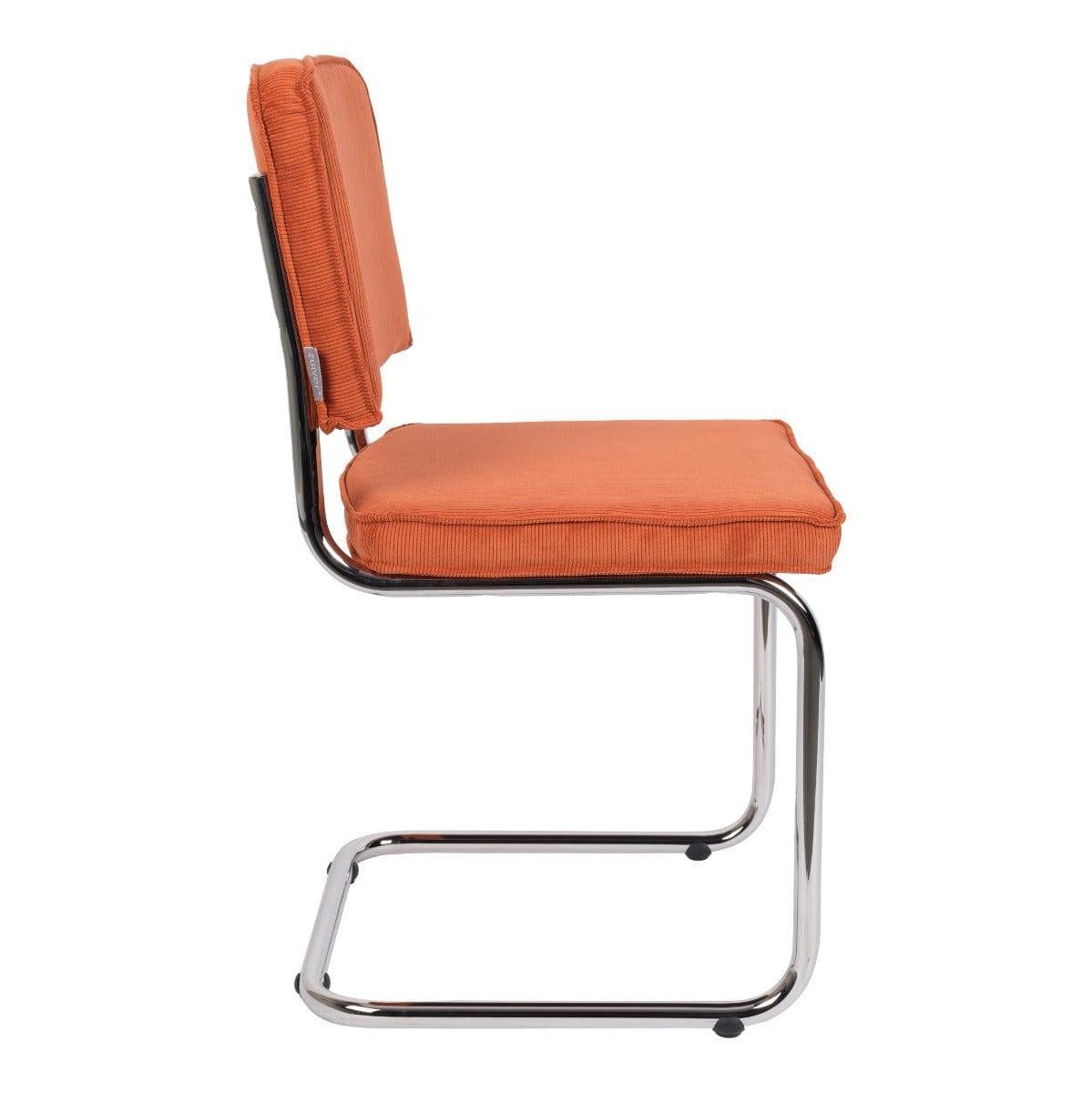 Ridge Rib to ponadczasowe krzesło, które wyróżnia nietypowy stelaż. Sztruksowe, pomarańczowe wykończenie i podstawa typu płoza z chromowanego metalu tworzą niesamowite połączenie vintage z nowoczesnym wzornictwem.