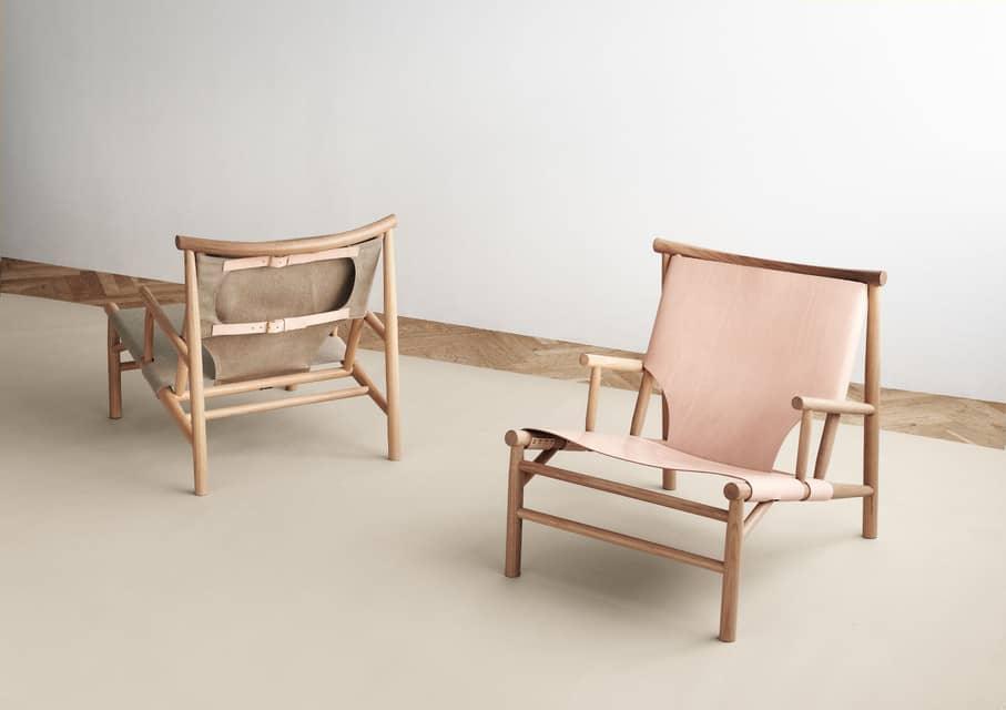 Krzesło SAMURAI łososiowy z dębową podstawą NORR11    Eye on Design