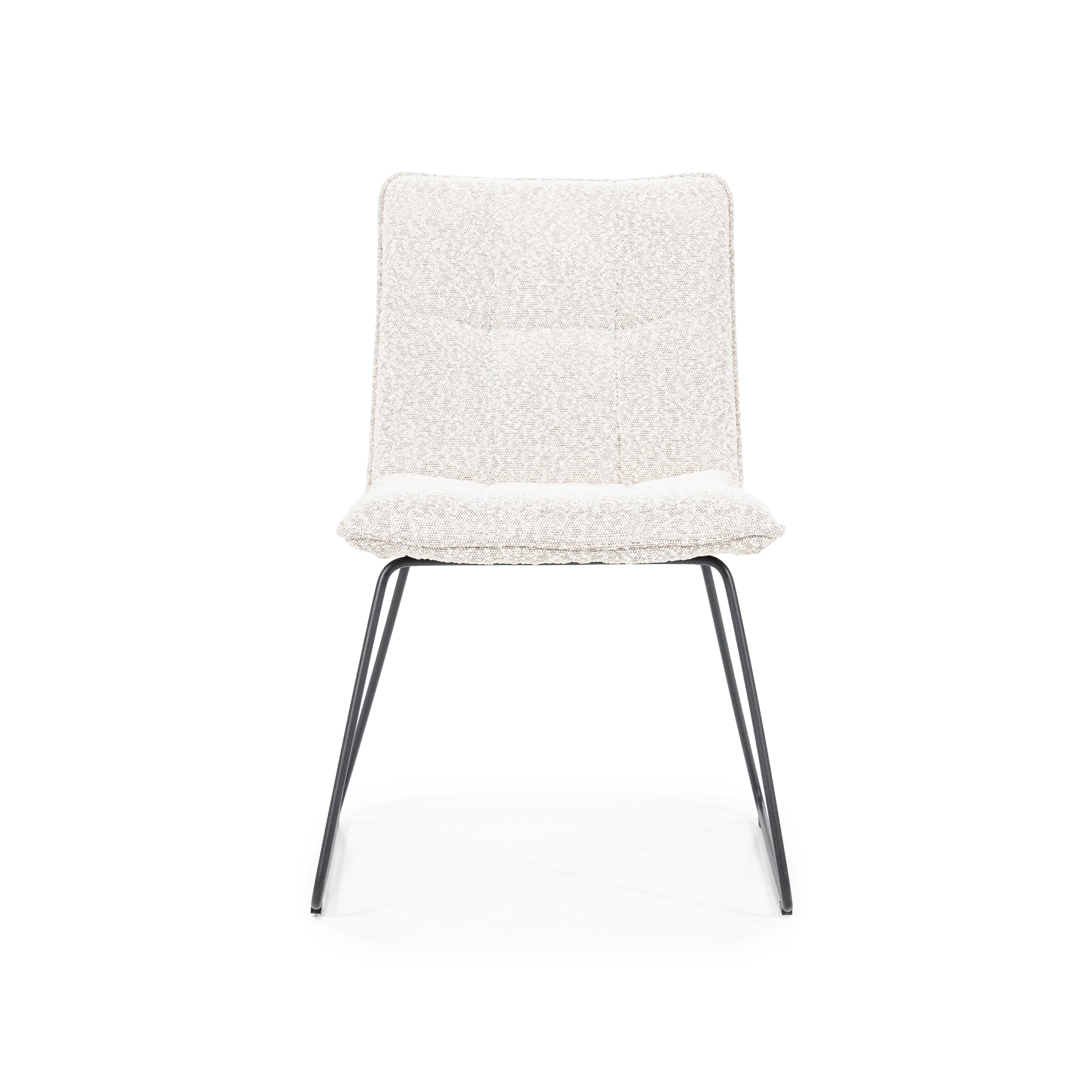 Krzesło Sella wyróżnia się nowoczesną, lekką konstrukcją opartą na smukłej metalowej podstawie typu płoza. Minimalistyczny design doskonale komponuje się z różnymi aranżacjami wnętrz, a jasna tapicerka dodaje całości świeżości i subtelnej elegancji. Wygodne siedzisko o odpowiedniej głębokości zapewnia komfort, dzięki czemu krzesło sprawdza się zarówno w jadalni, jak i w przestrzeni biurowej.