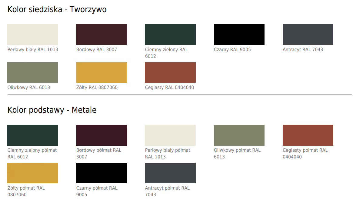 Podstawa - stelaż Ø22 mm, grubość ścianki 2,5 mm, malowana proszkowo;