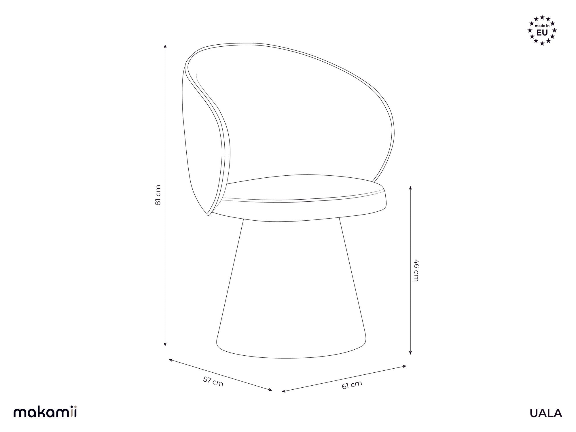 Solidna, tapicerowana podstawa o stożkowej formie inspirowana jest spokojnym rytmem wulkanicznych krajobrazów wysp, nadając krzesłu wyrazistego, a jednocześnie ciepłego charakteru. Miękka sylwetka i przyjazna linia sprawiają, że krzesło Uala doskonale odnajduje się w przestrzeniach, w których design spotyka się z naturą — zarówno w domowych jadalniach, jak i we wnętrzach inspirowanych wyspiarską swobodą i równowagą.