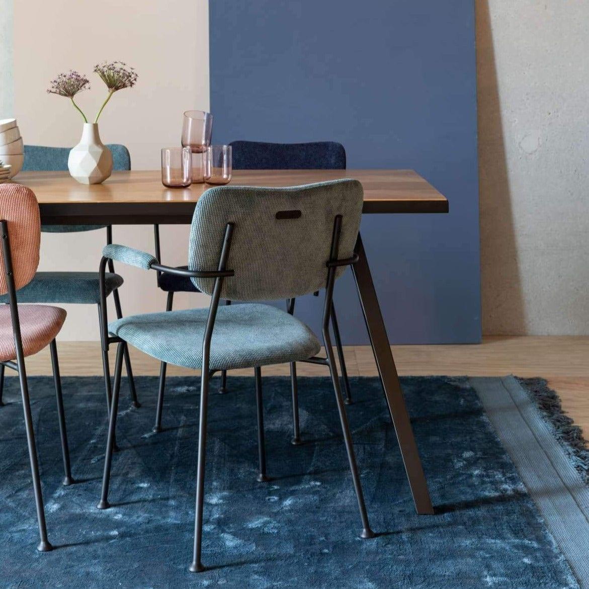Jest to uniwersalny model, który sprawdzi się w wielu aranżacjach. Morski odcień materiału połączony z krzesłami w innych kolorach, może stworzyć eklektyczny i przyciągający uwagę zestaw w domowej jadalni.