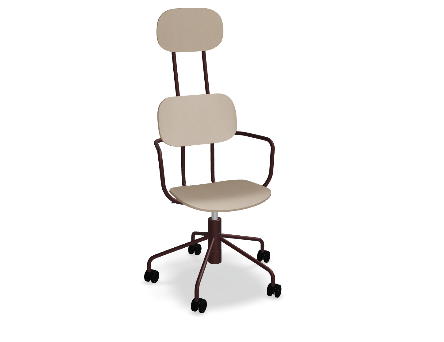 Krzesło biurowe z zagłówkiem New School z regulowaną wysokością zapewnia wygodne podparcie dla całych pleców użytkownika. Wyposażone w siłownik i kółka, umożliwia pełną swobodę ruchu, co czyni je idealnym wyborem do biur i placówek edukacyjnych. Trwałe siedzisko i oparcie ze sklejki są łatwe w pielęgnacji, więc sprawdzą się w miejscach o intensywnym użytkowaniu.