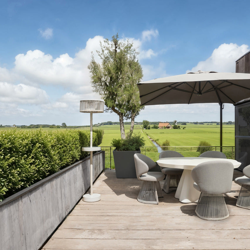 Lampa ogrodowa Lunar łączy minimalistyczny design z aluminiową konstrukcją oraz kołnierzem Olefin, co sprawia, że jest doskonałym wyborem do nowoczesnych przestrzeni zewnętrznych. Jej delikatny, beżowy kolor dodaje ciepła i atmosfery każdemu otoczeniu, tworząc przytulną aurę zarówno na tarasie, jak i w ogrodzie. Dzięki swojej eleganckiej, ale prostszej formie, lampa Lunar pasuje do różnych stylów aranżacji, wprowadzając subtelną elegancję do przestrzeni na świeżym powietrzu.