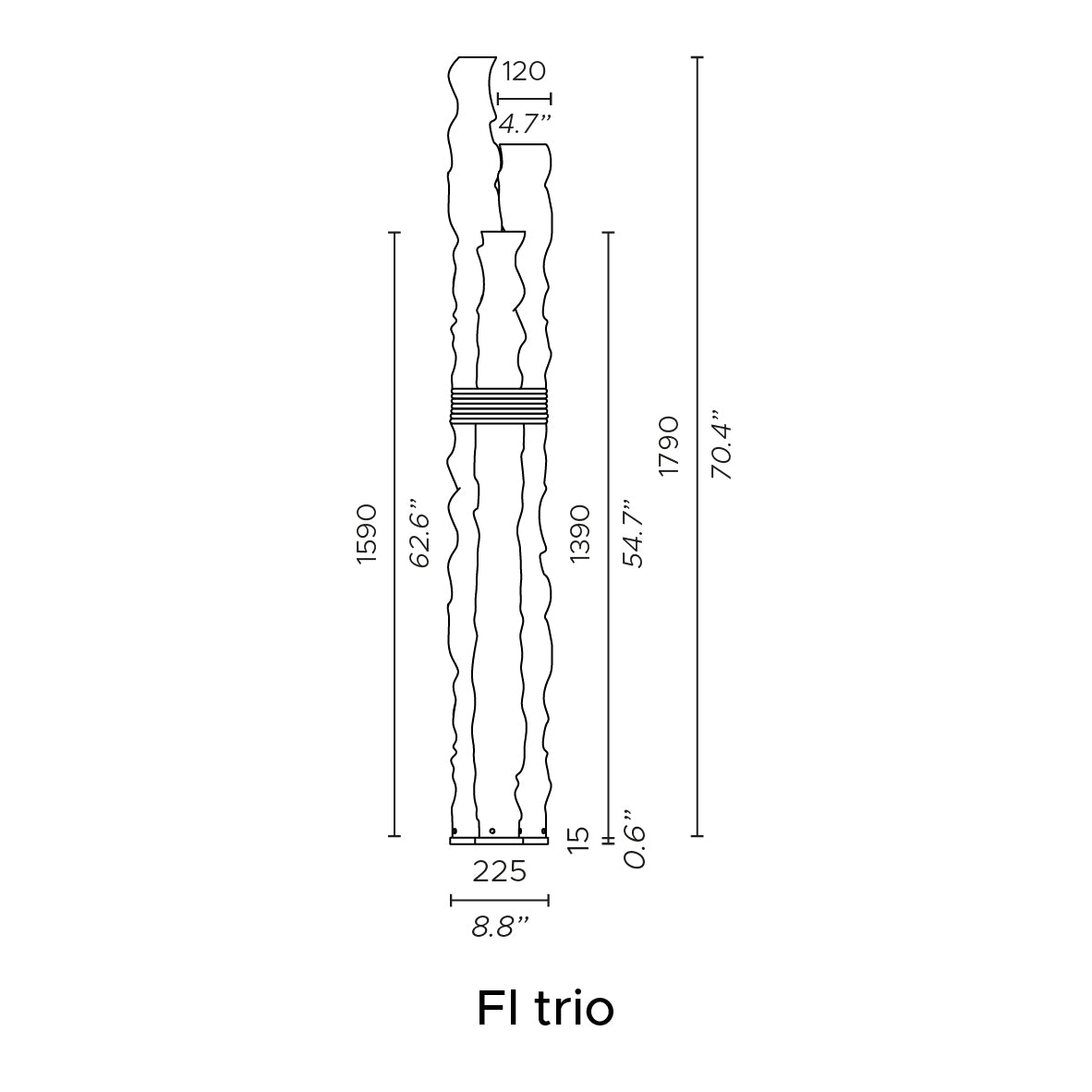 Baggy to eklektyczna kolekcja lamp o nieformalnym i zabawnym kształcie, takim jak oversize'owe spodnie, które zainspirowały jej nazwę. Lampa Baggy Trio zawiera trzy lampy o różnych wysokościach, co dodaje dynamiki kompozycji.