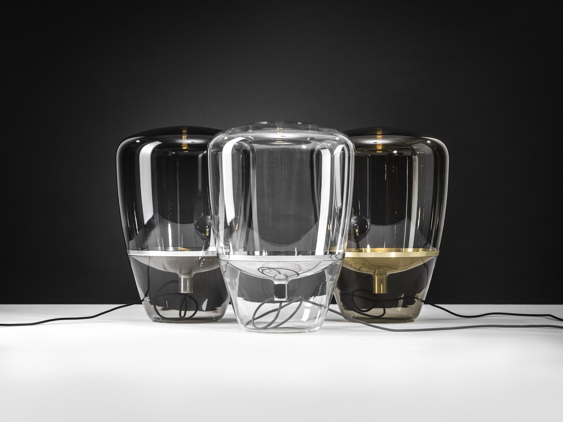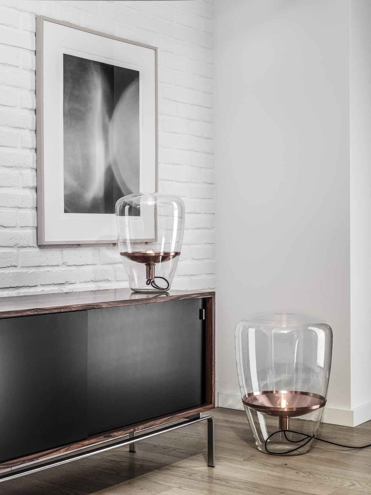 Lampa podłogowa Balloons to ponadczasowa kreacja, która czerpie inspirację z prymitywnych form przypominających balony na ogrzane powietrze. Urzeka ona wielkoformatowym, ręcznie dmuchanym szkłem, w którym unosi się elegancki, metalowy reflektor. Unikalny urok tej lampy wynika z zastosowania dwóch niezależnych sekcji szklanych, które razem tworzą wrażenie spójnej całości. Elegancki, ręcznie tłoczony metalowy odbłyśnik i bogate proporcje definiują charakter tej kolekcji.